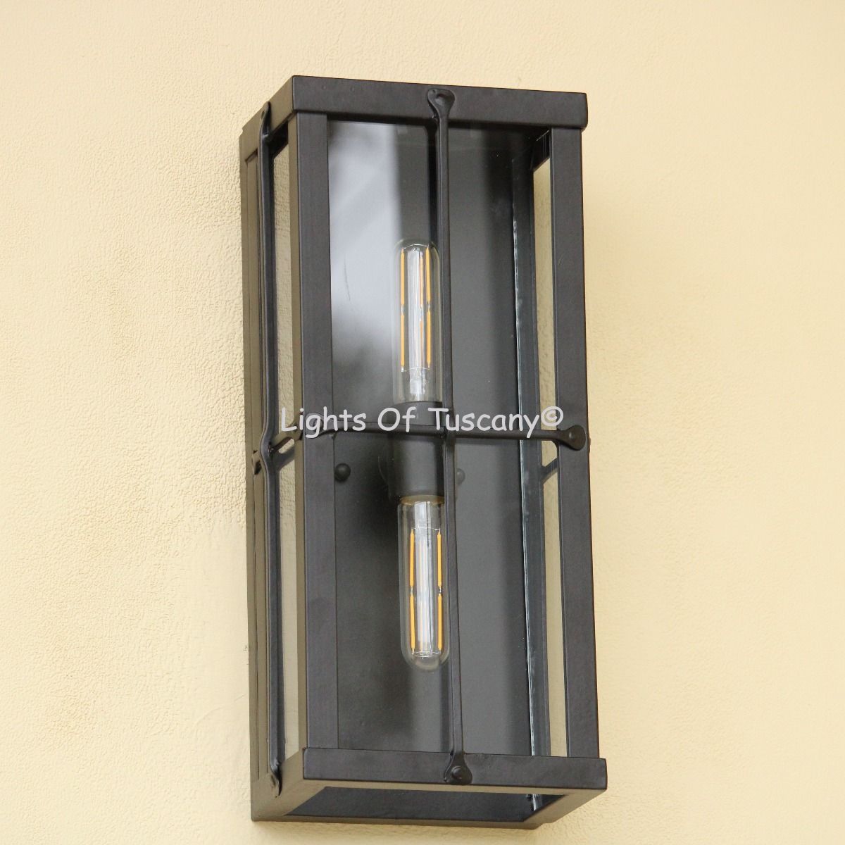 This beautiful hand crafted outdoor wall light is made of all authentic hand forged wrought iron. All our fixtures are hand painted and available in any of our finish options. This fixture is perfect for garage lighting, outdoor walls, backyard and patio lighting.