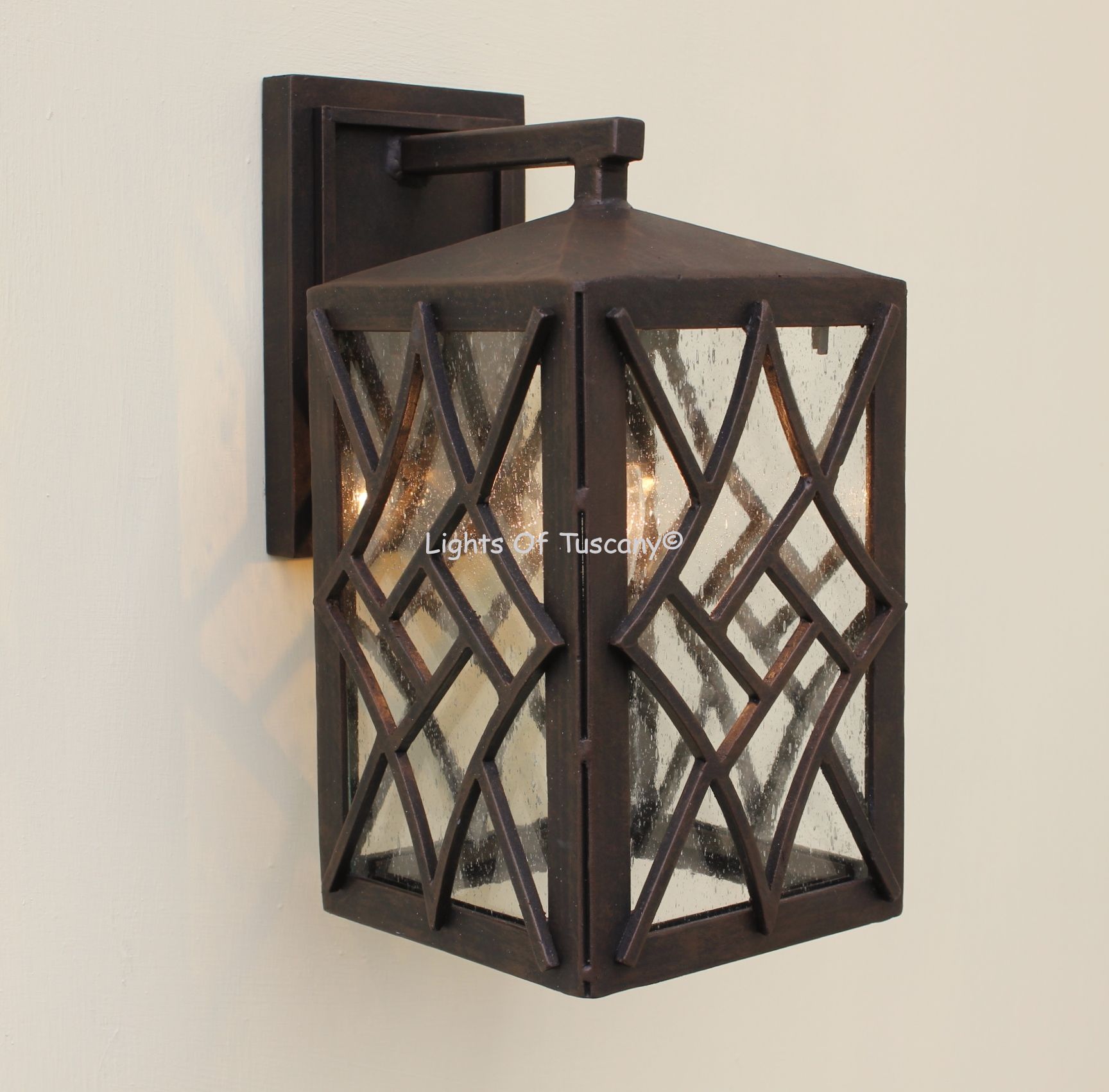 This beautiful hand crafted outdoor wall light is made of all authentic hand forged wrought iron. All our fixtures are hand painted and available in any of our finish options. This fixture is perfect for garage lighting, outdoor walls, backyard and patio lighting.