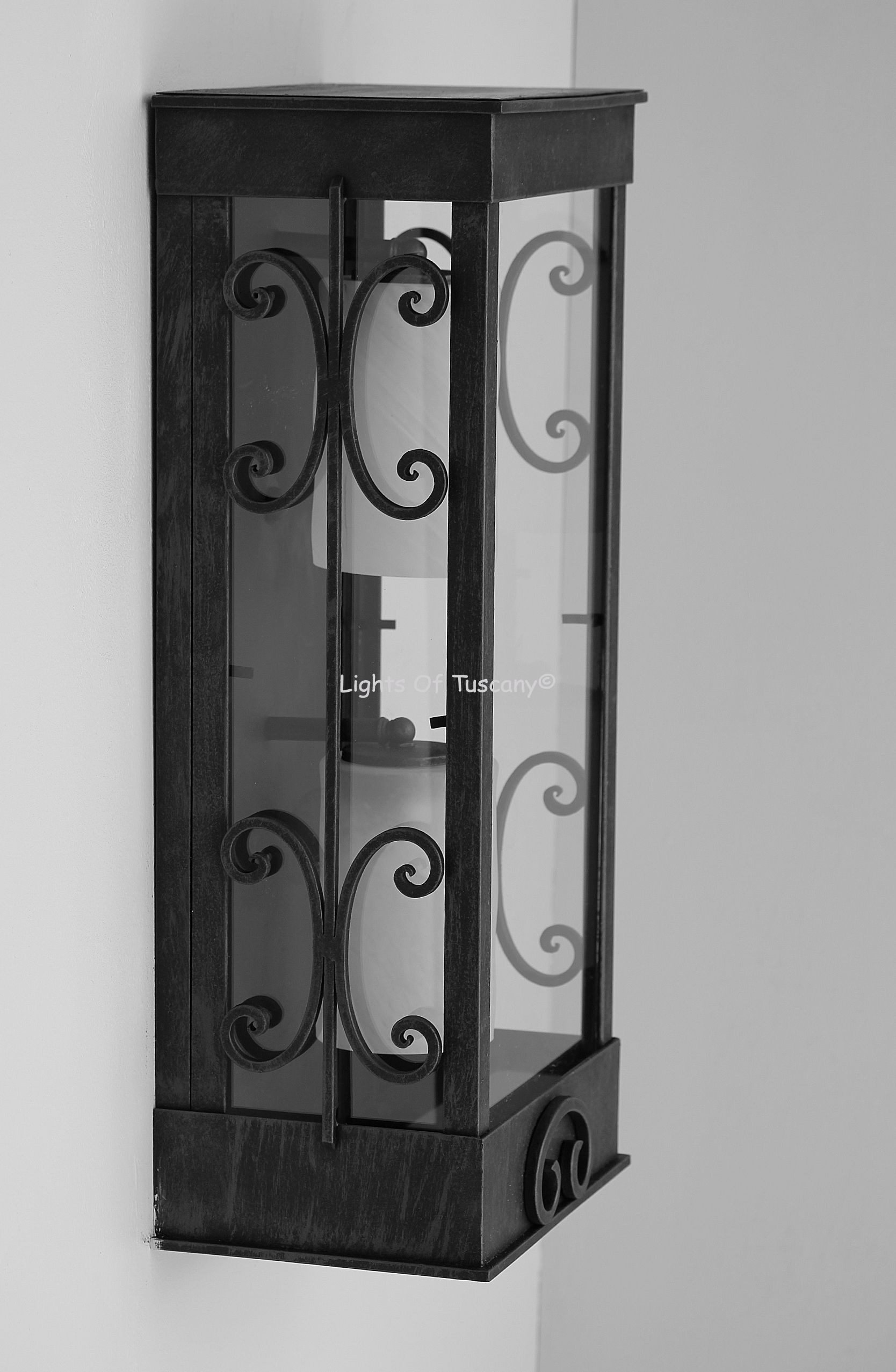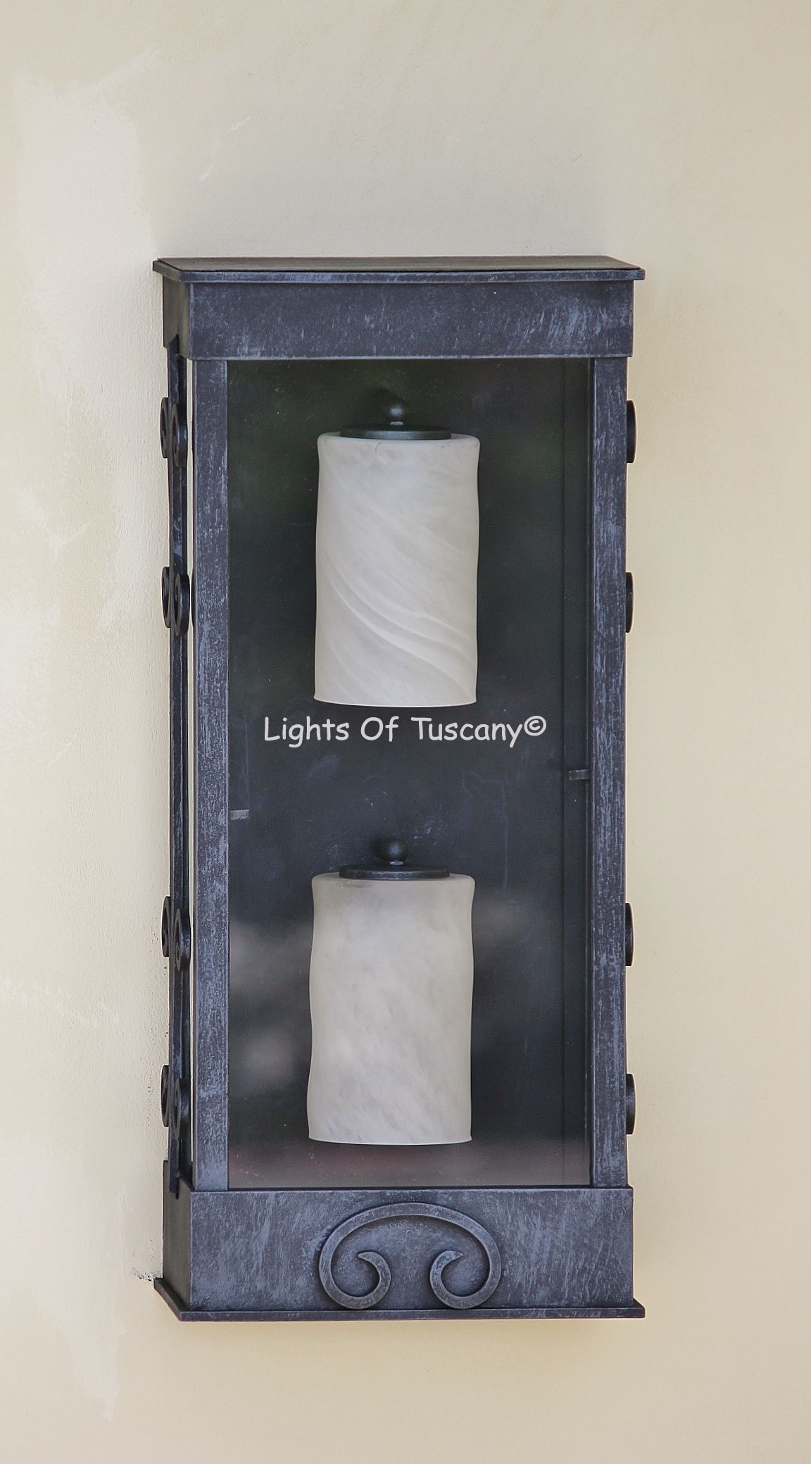 This beautiful hand crafted outdoor wall light is made of all authentic hand forged wrought iron. All our fixtures are hand painted and available in any of our finish options. This fixture is perfect for garage lighting, outdoor walls, backyard and patio lighting.
