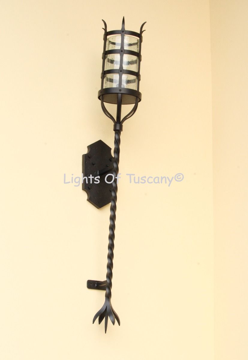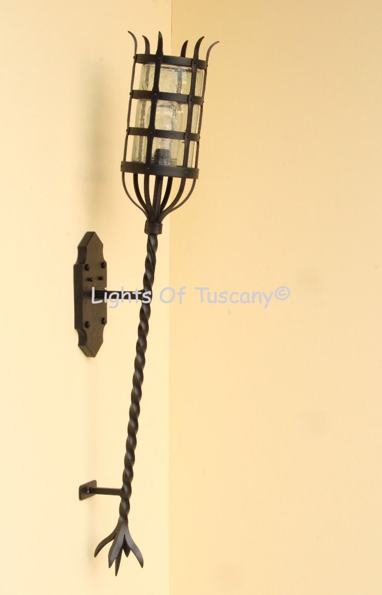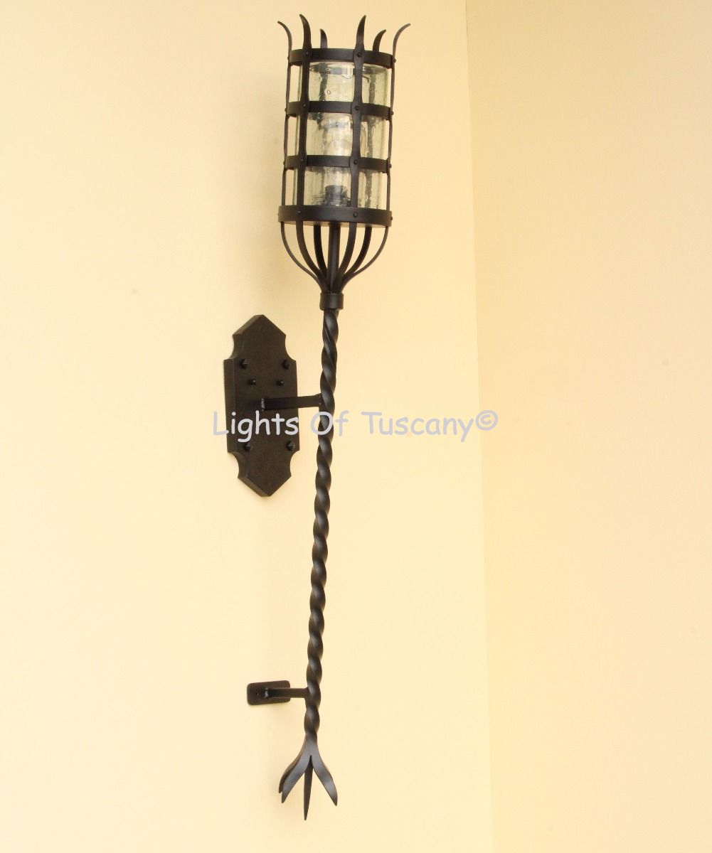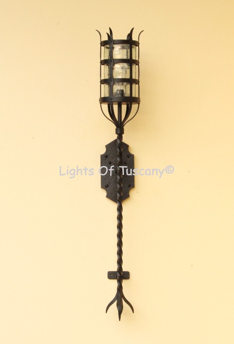 Beautiful authentic hand forged wrought iron lighting fixture. This wall sconce is perfect as a hallway light, bedside lighting, bathroom vanity or any living space. Available in your selection of finish options.