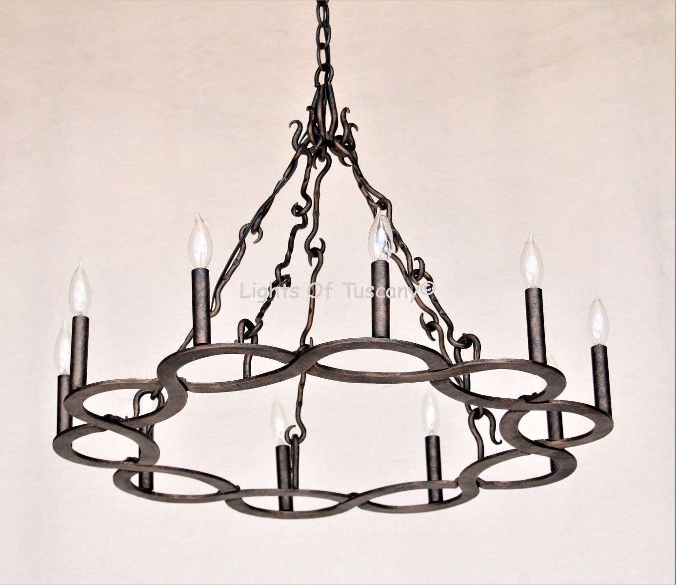 This beautiful wrought iron Chandelier is made of all hand forged wrought iron. This fixture is perfect for your entryway, living spaces, or dining area. Available in your choice of color options.