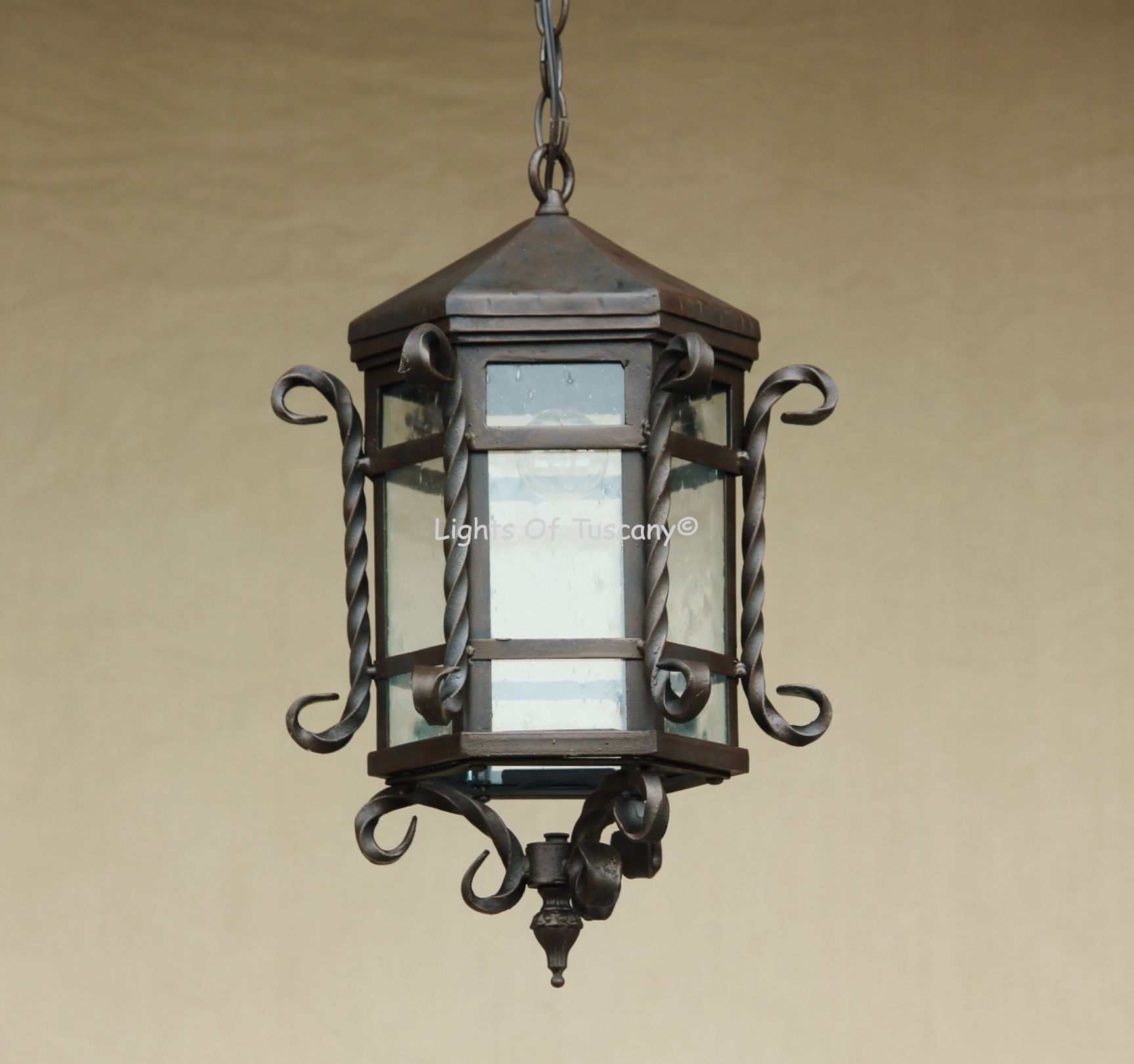 Beautiful authentic hand forged wrought iron lighting fixture. Available in your selection of finish options.