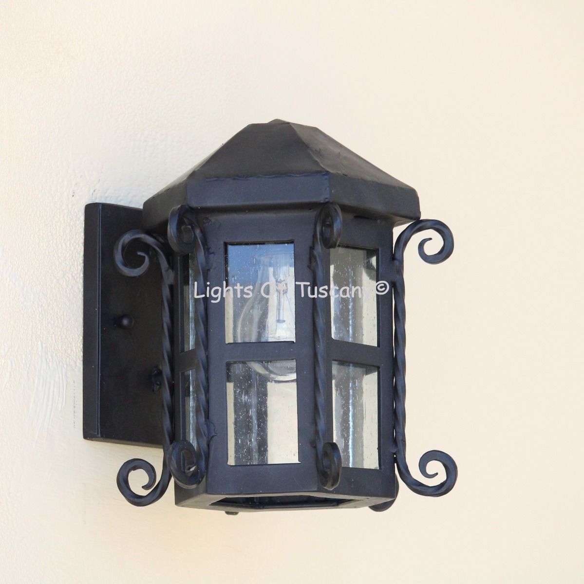 This beautiful hand crafted outdoor wall light is made of all authentic hand forged wrought iron. All our fixtures are hand painted and available in any of our finish options. This fixture is perfect for garage lighting, outdoor walls, backyard and patio lighting.