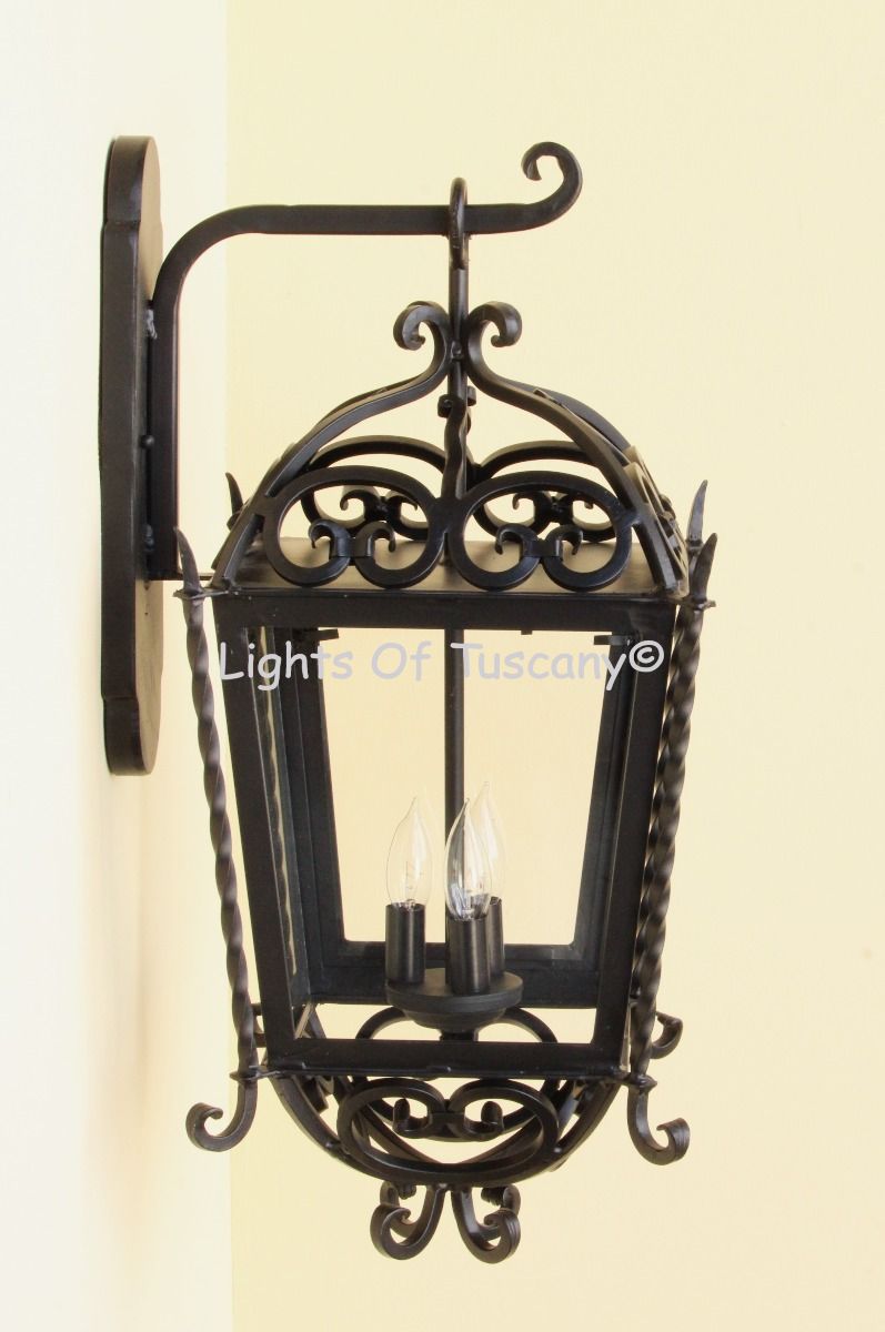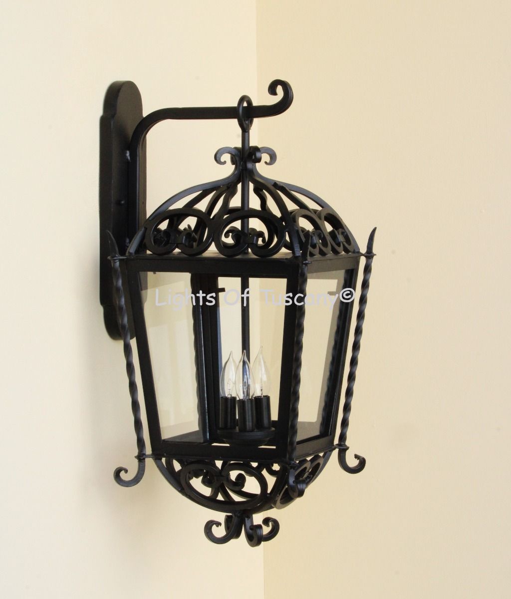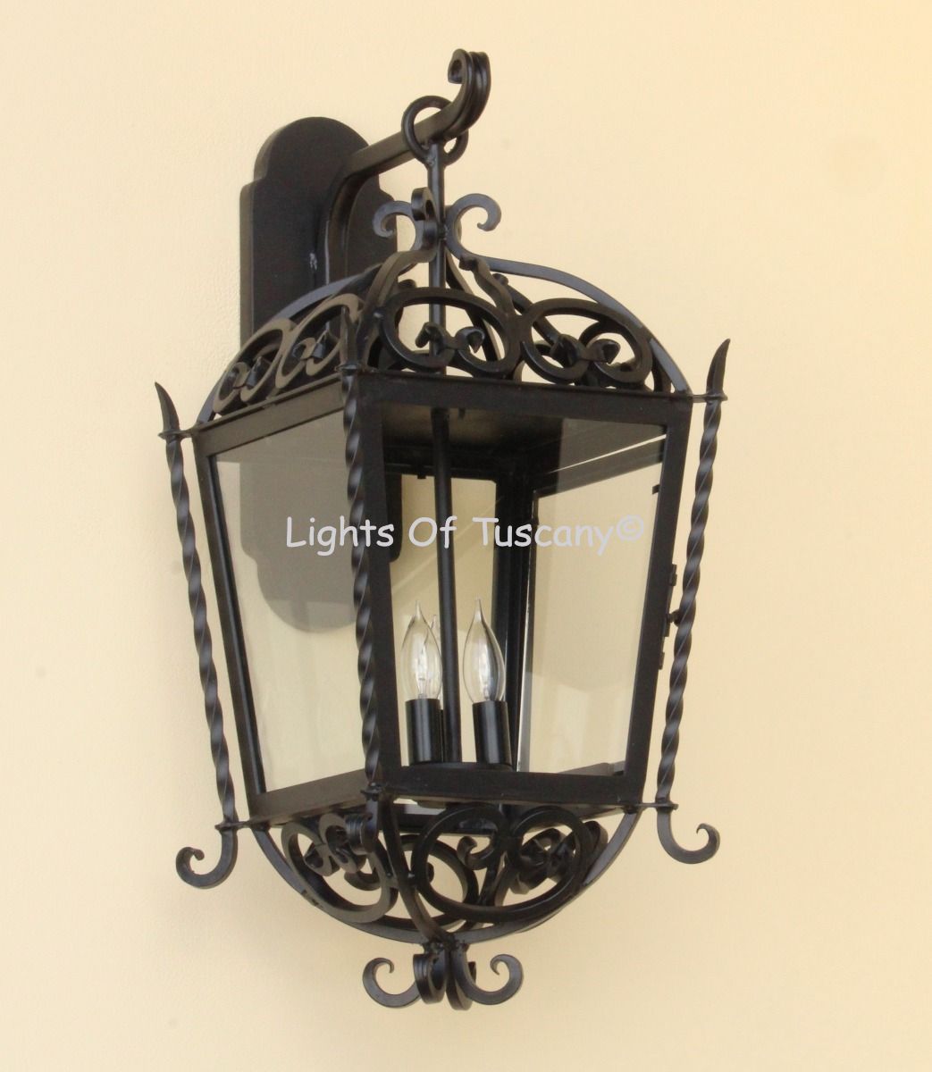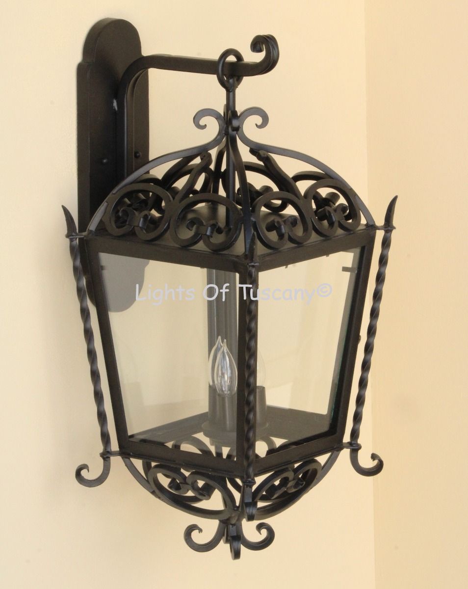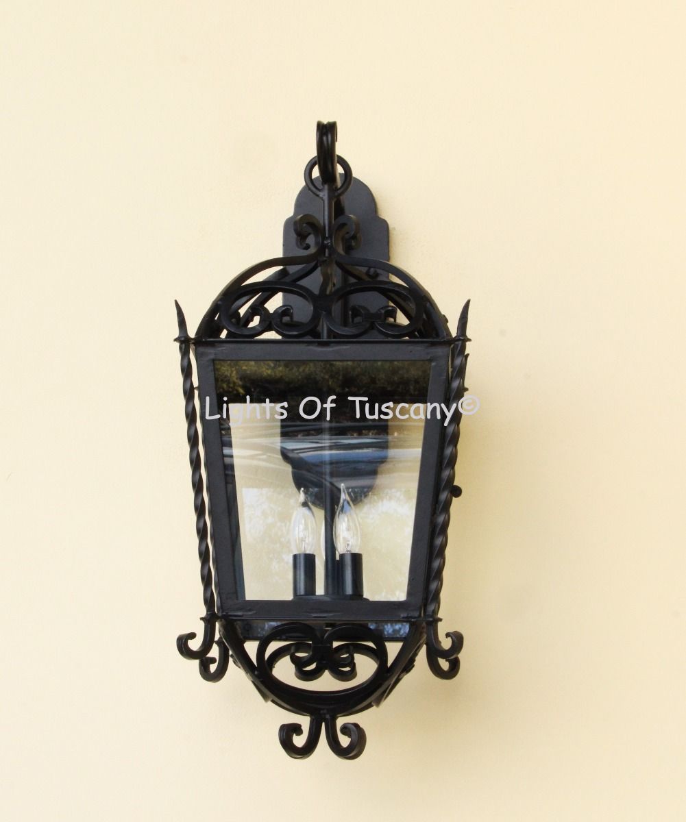 This beautiful hand crafted outdoor wall light is made of all authentic hand forged wrought iron. All our fixtures are hand painted and available in any of our finish options. This fixture is perfect for garage lighting, outdoor walls, backyard and patio lighting.
