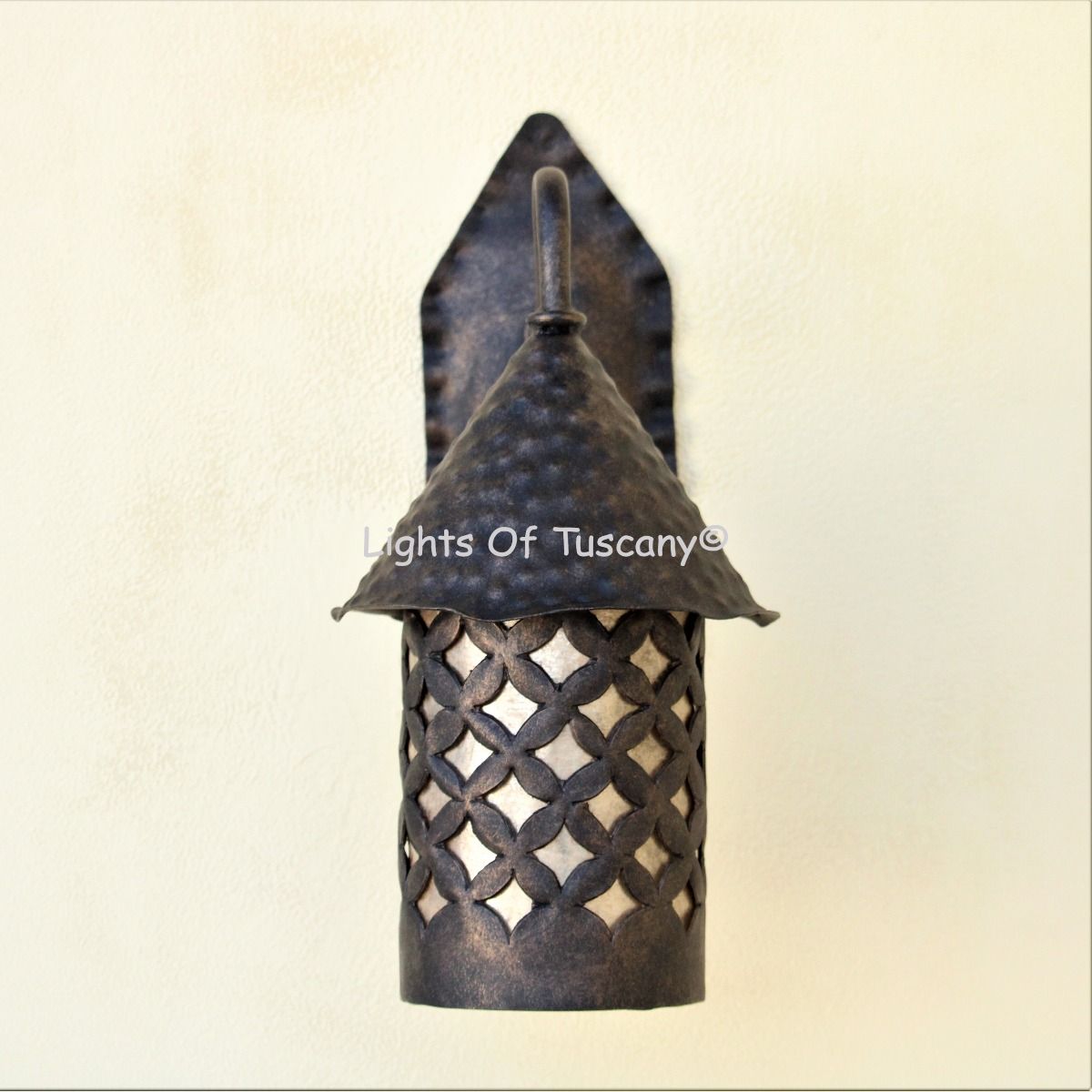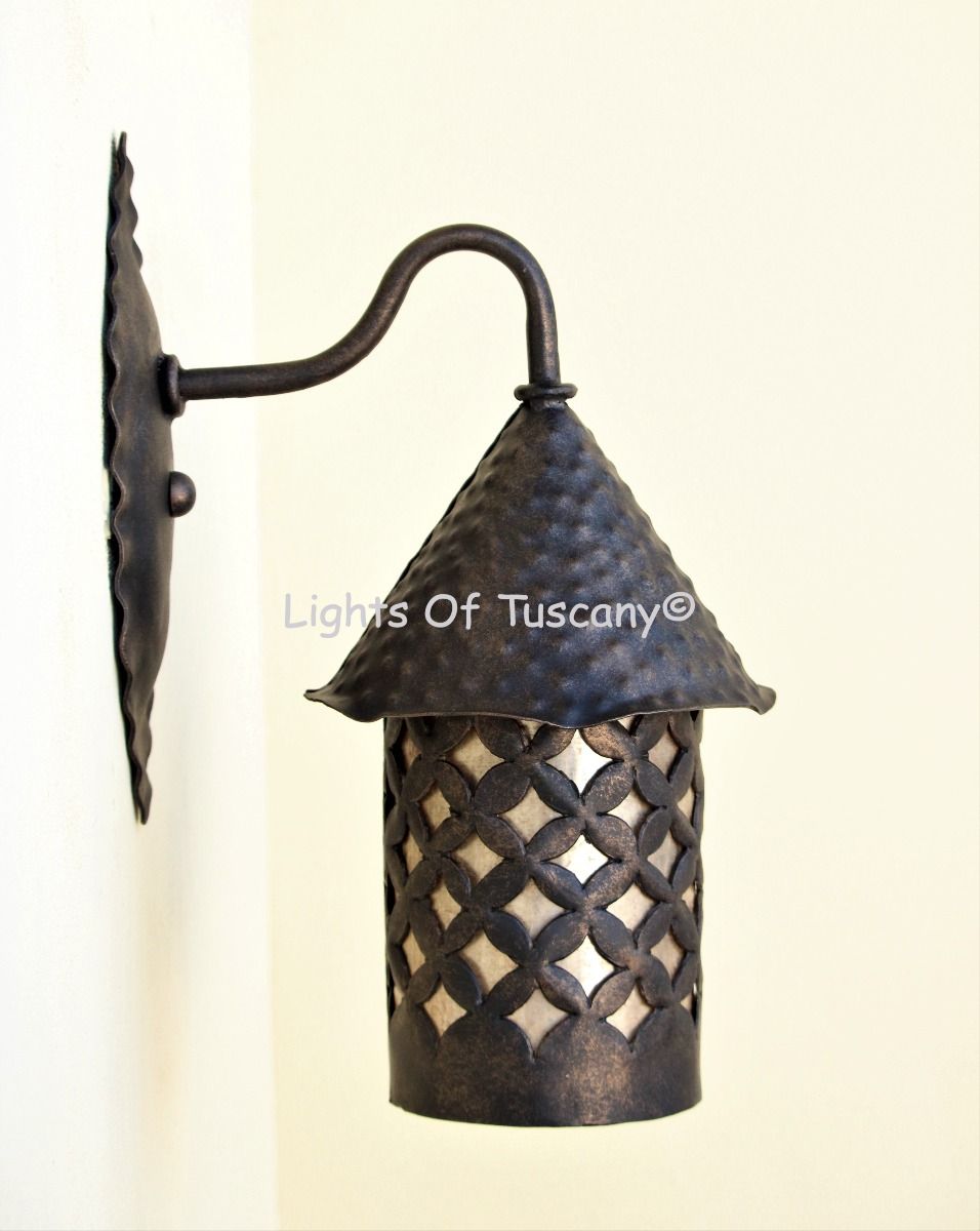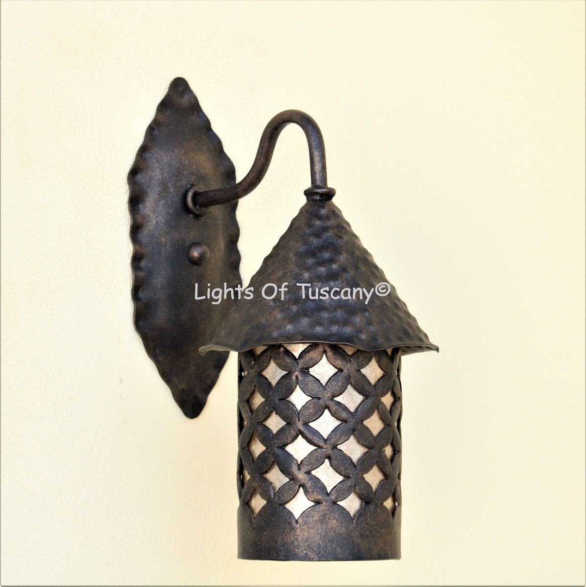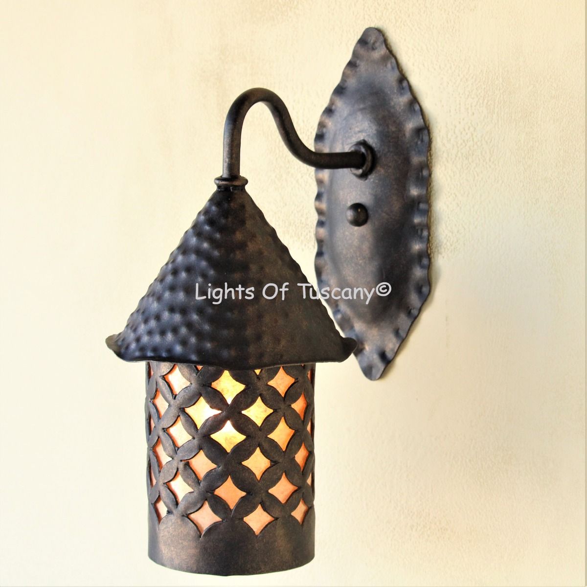 This beautiful hand crafted outdoor wall light is made of all authentic hand forged wrought iron. All our fixtures are hand painted and available in any of our finish options. This fixture is perfect for garage lighting, outdoor walls, backyard and patio lighting.