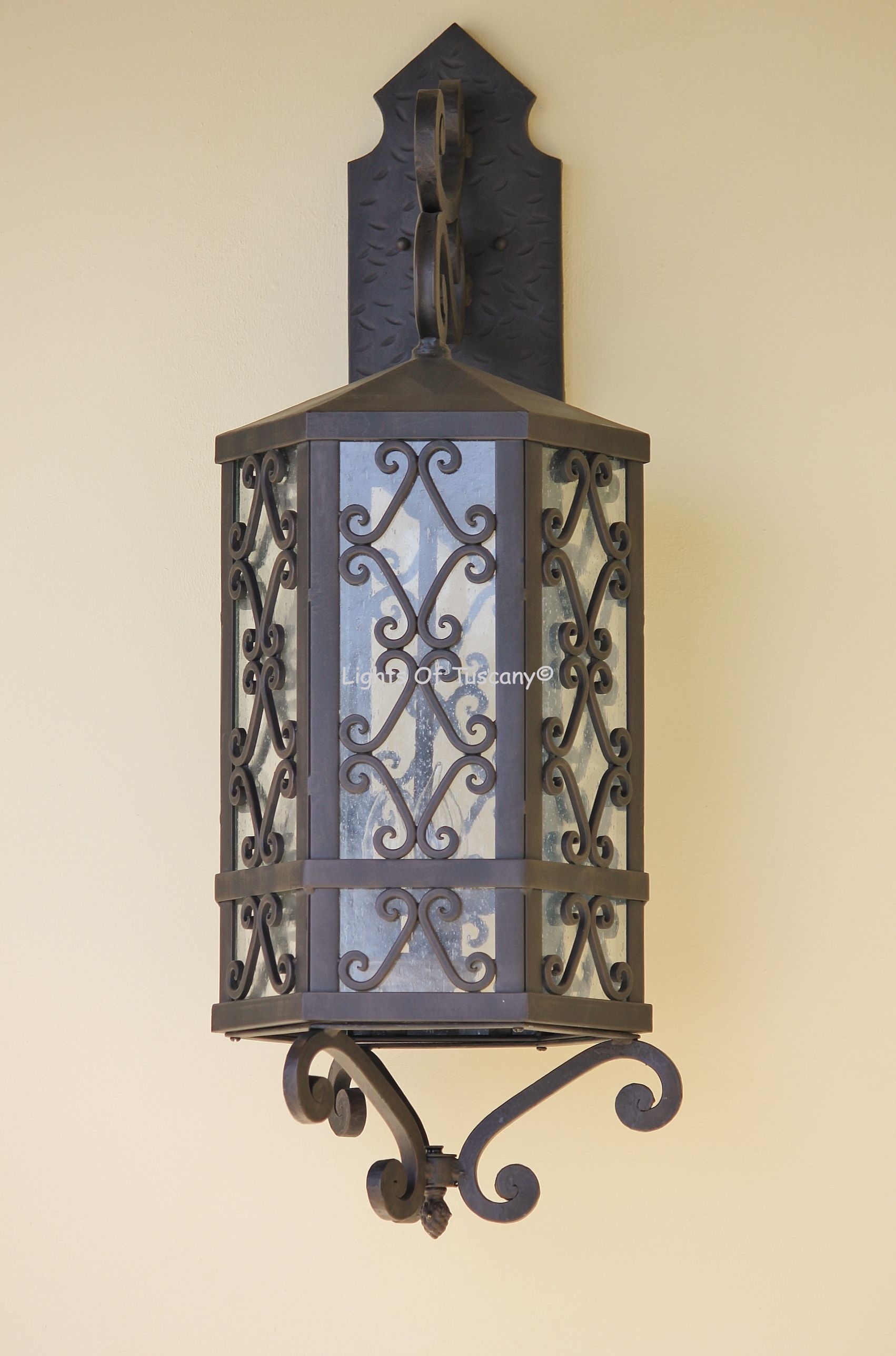 This beautiful hand crafted outdoor wall light is made of all authentic hand forged wrought iron. All our fixtures are hand painted and available in any of our finish options. This fixture is perfect for garage lighting, outdoor walls, backyard and patio lighting.
