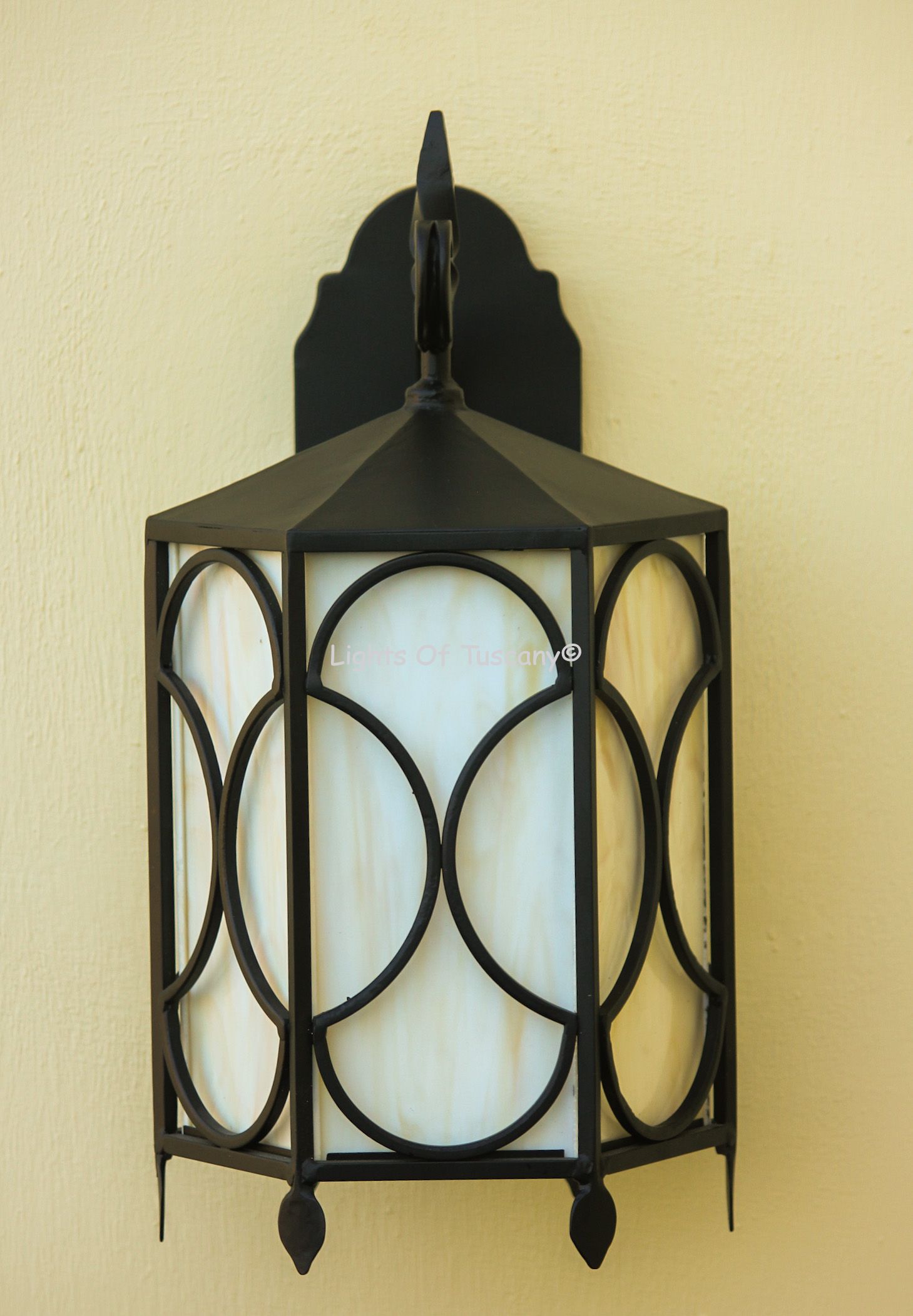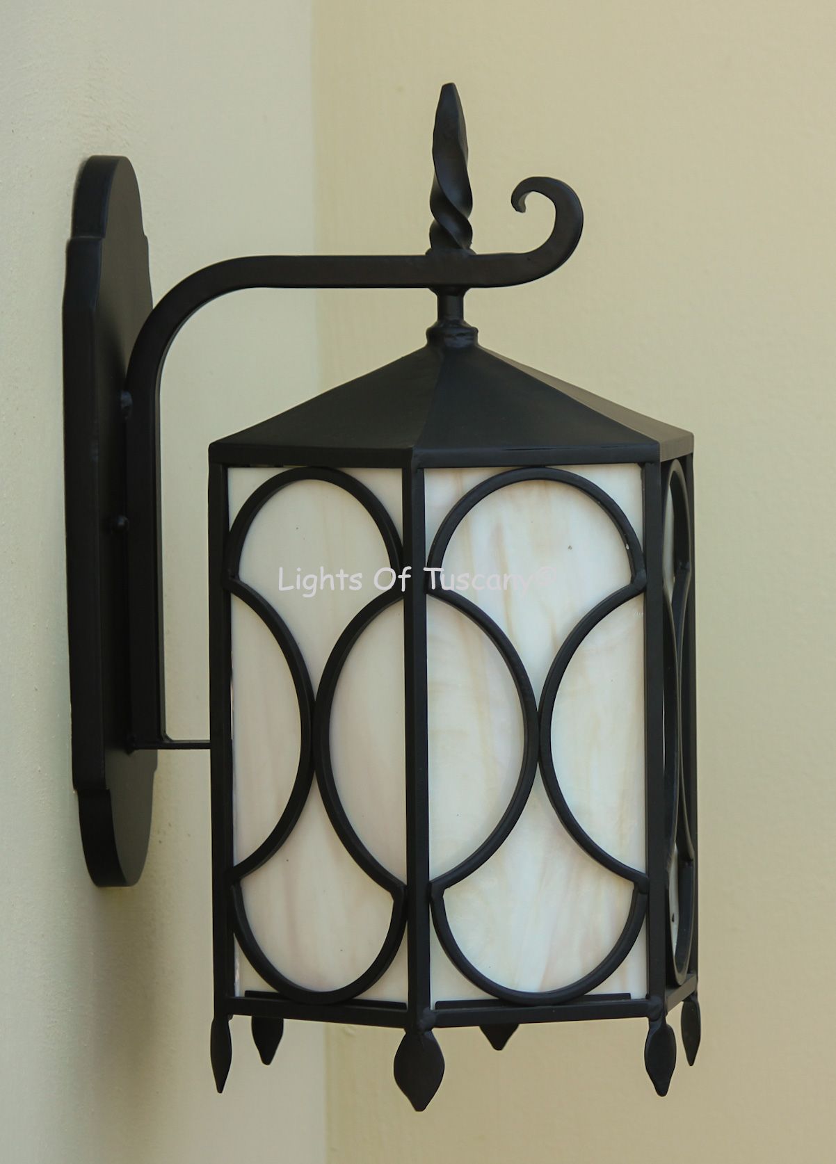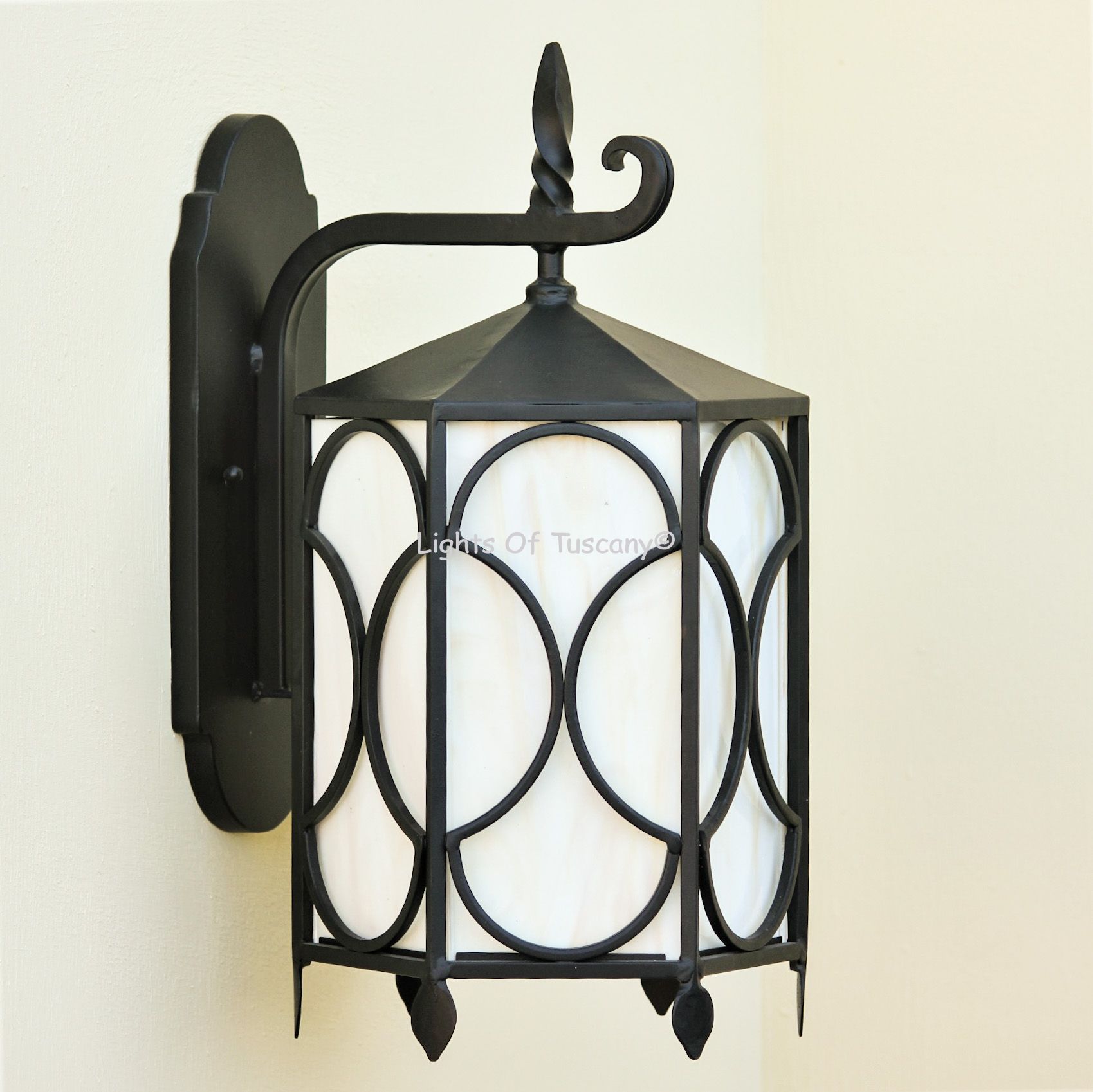 This beautiful hand crafted outdoor wall light is made of all authentic hand forged wrought iron. All our fixtures are hand painted and available in any of our finish options. This fixture is perfect for garage lighting, outdoor walls, backyard and patio lighting.