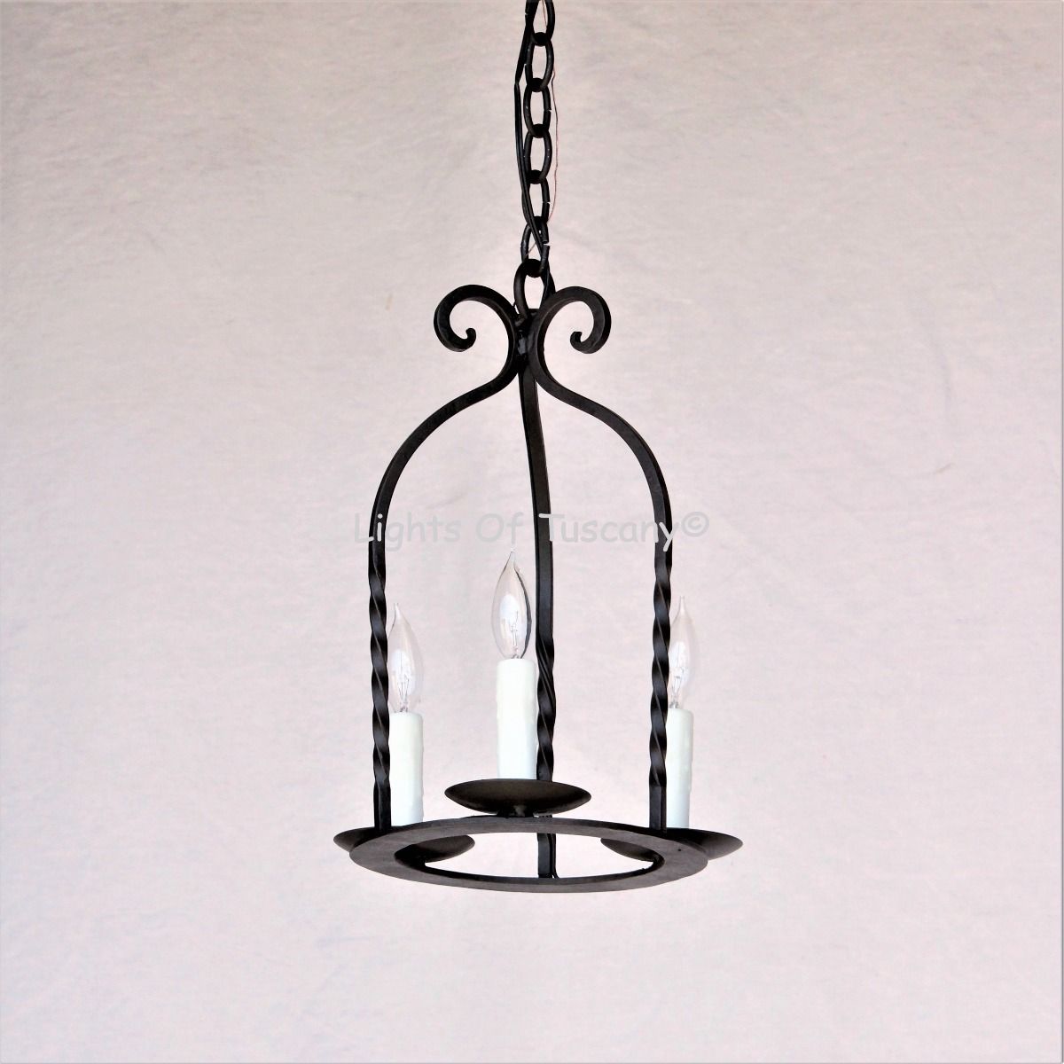 This beautiful mini Rustic Style wrought iron Chandelier is made of all hand forged wrought iron. Available in your choice of color options.