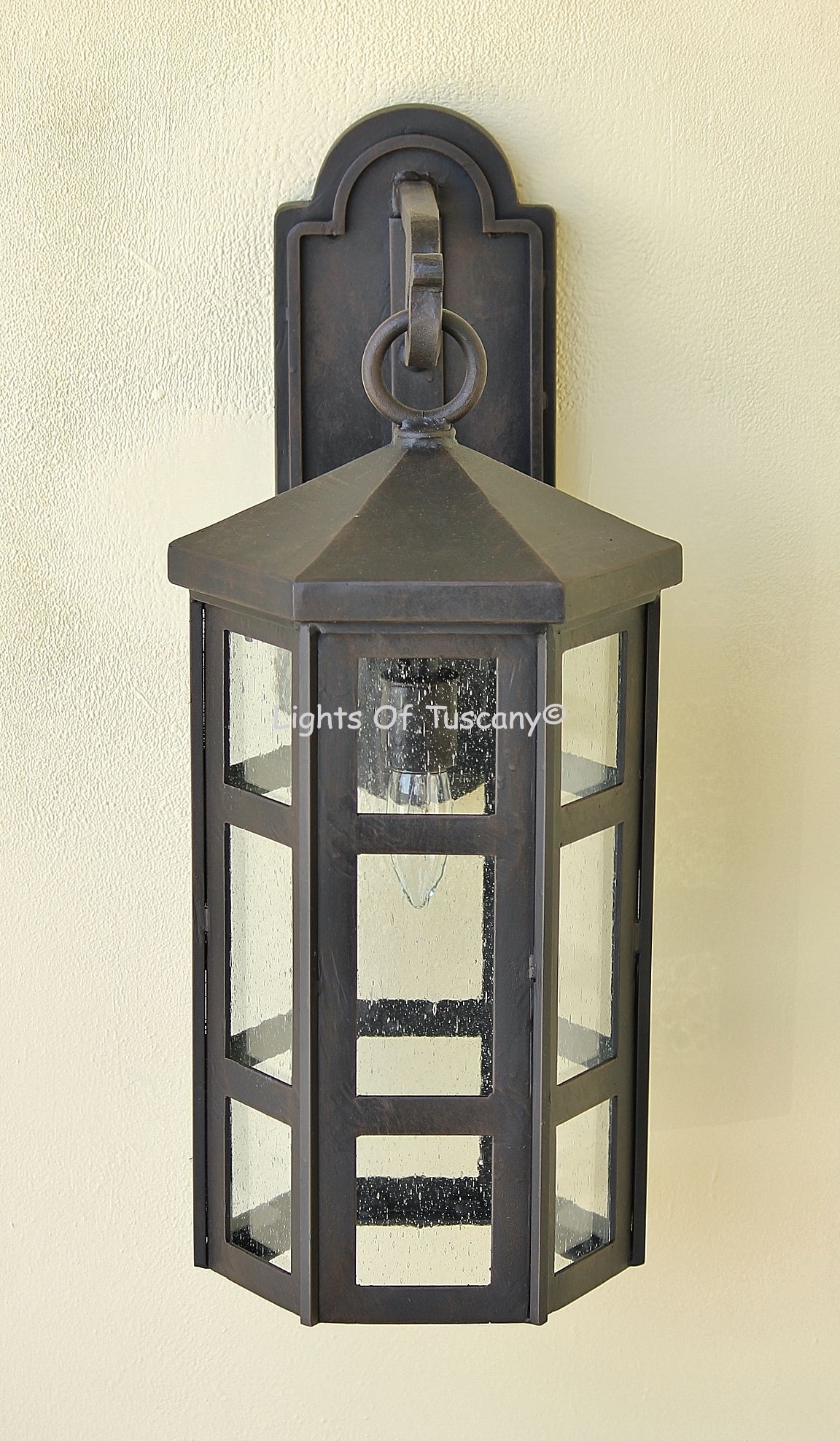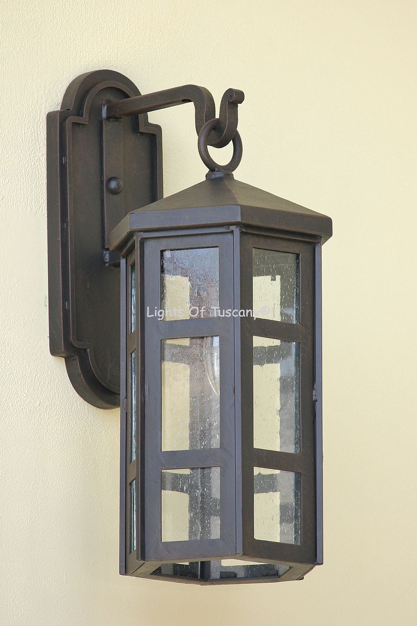This beautiful hand crafted outdoor wall light is made of all authentic hand forged wrought iron. All our fixtures are hand painted and available in any of our finish options. This fixture is perfect for garage lighting, outdoor walls, backyard and patio lighting.