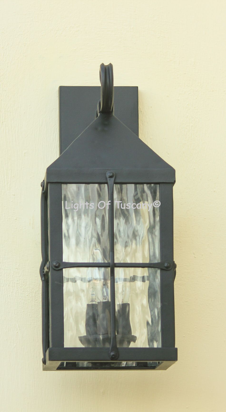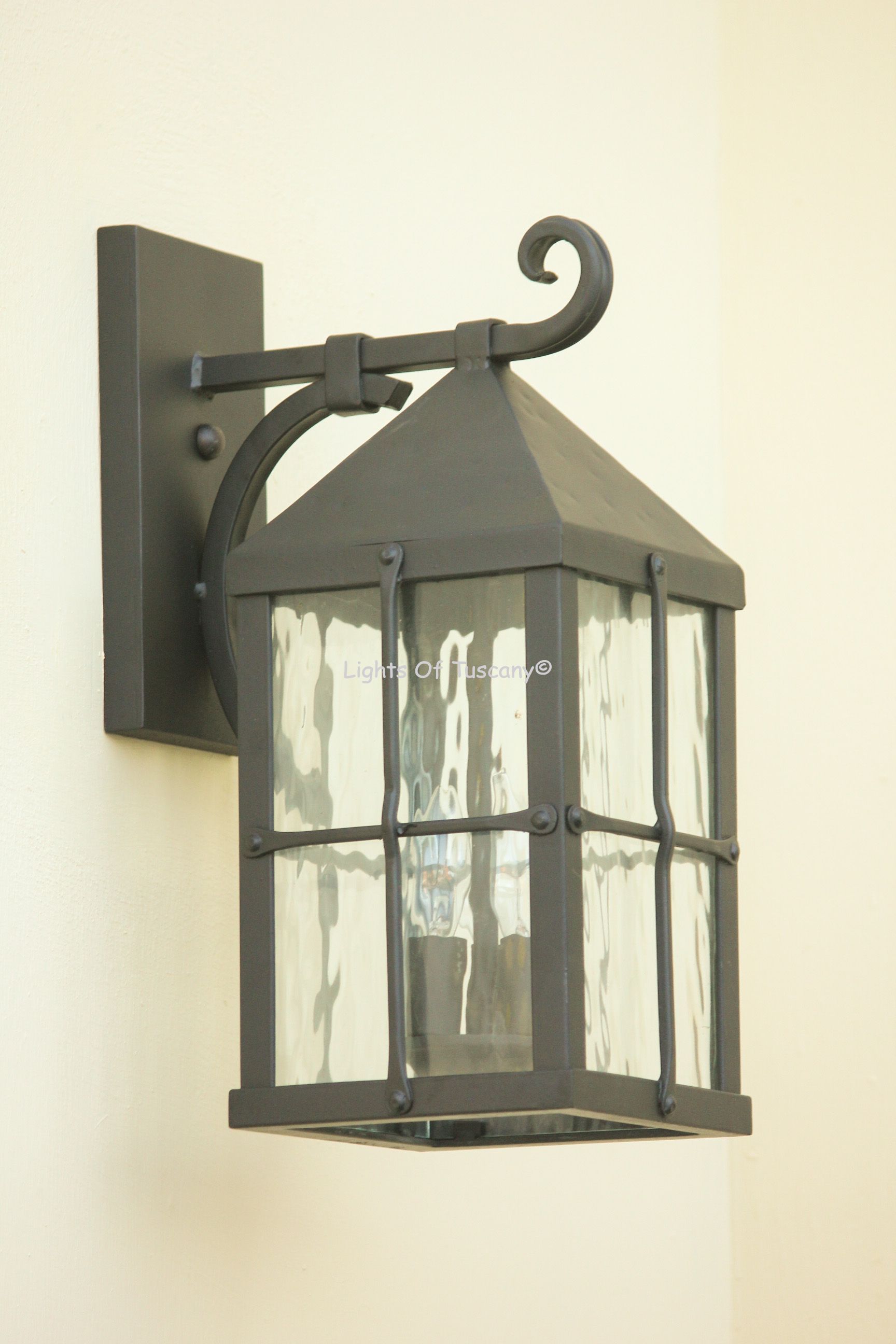 This beautiful hand crafted outdoor wall light is made of all authentic hand forged wrought iron. All our fixtures are hand painted and available in any of our finish options. This fixture is perfect for garage lighting, outdoor walls, backyard and patio lighting.