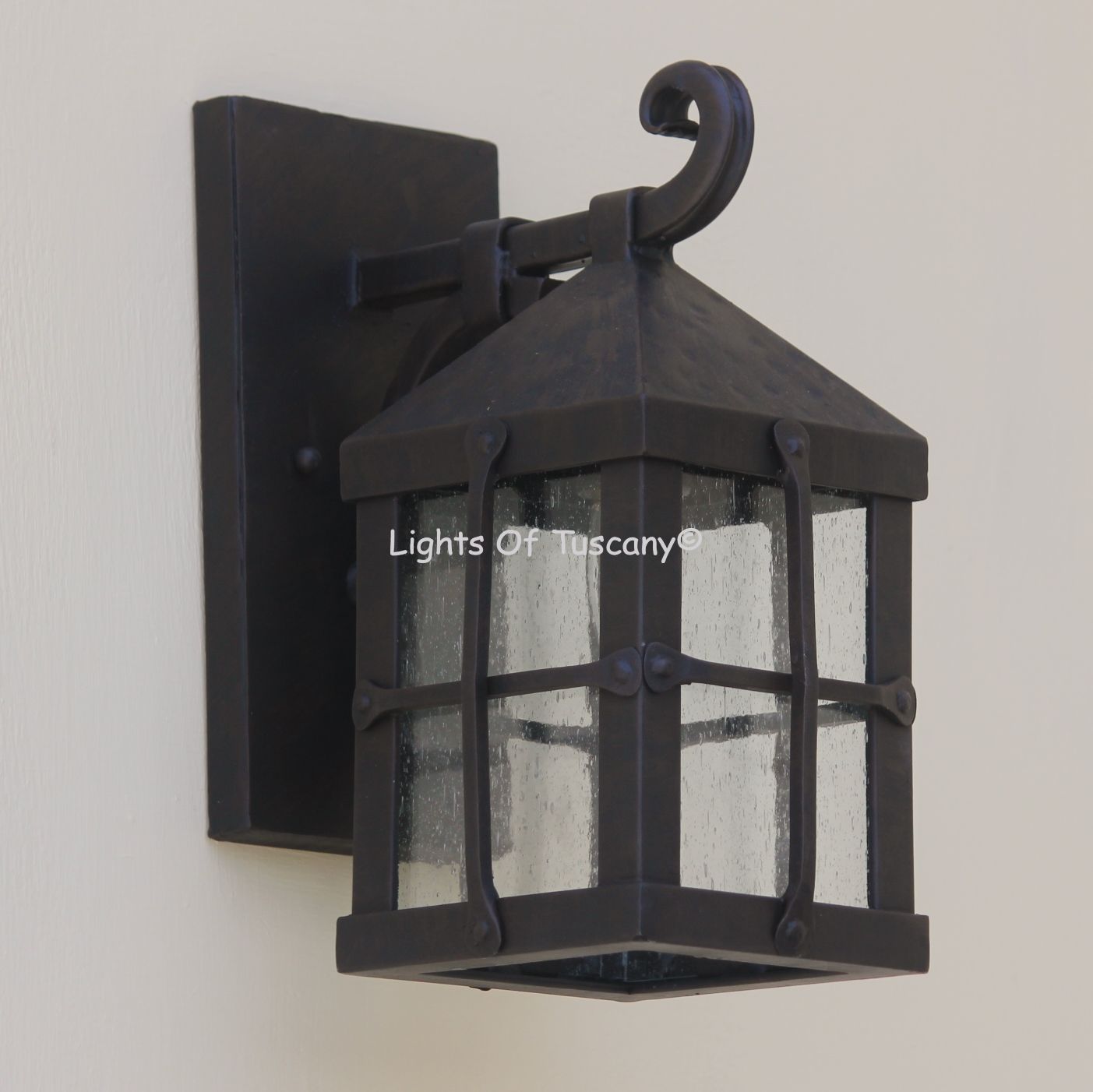 This beautiful hand crafted outdoor wall light is made of all authentic hand forged wrought iron. All our fixtures are hand painted and available in any of our finish options. This fixture is perfect for garage lighting, outdoor walls, backyard and patio lighting.