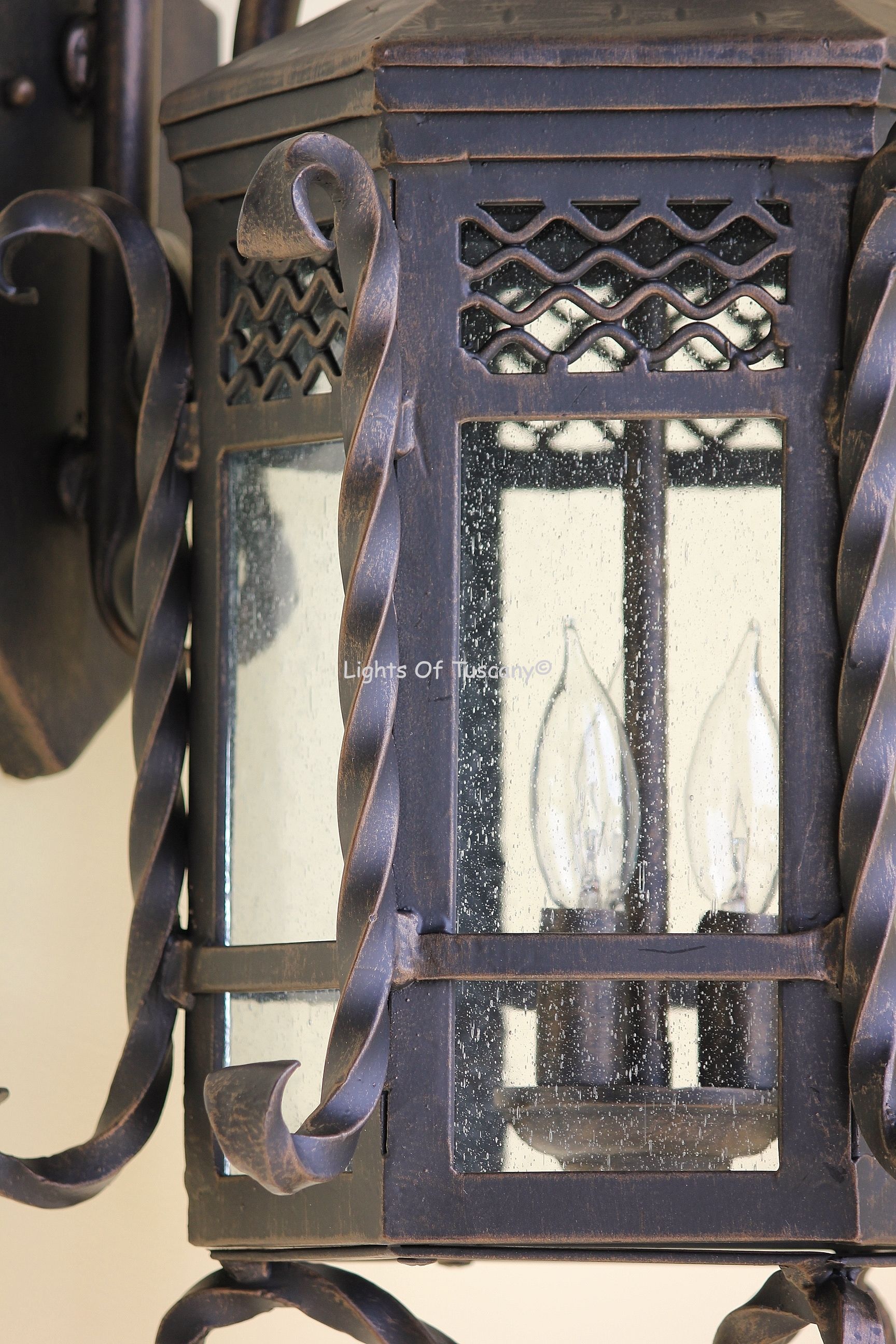This beautiful hand crafted outdoor wall light is made of all authentic hand forged wrought iron. All our fixtures are hand painted and available in any of our finish options. This fixture is perfect for garage lighting, outdoor walls, backyard and patio lighting.