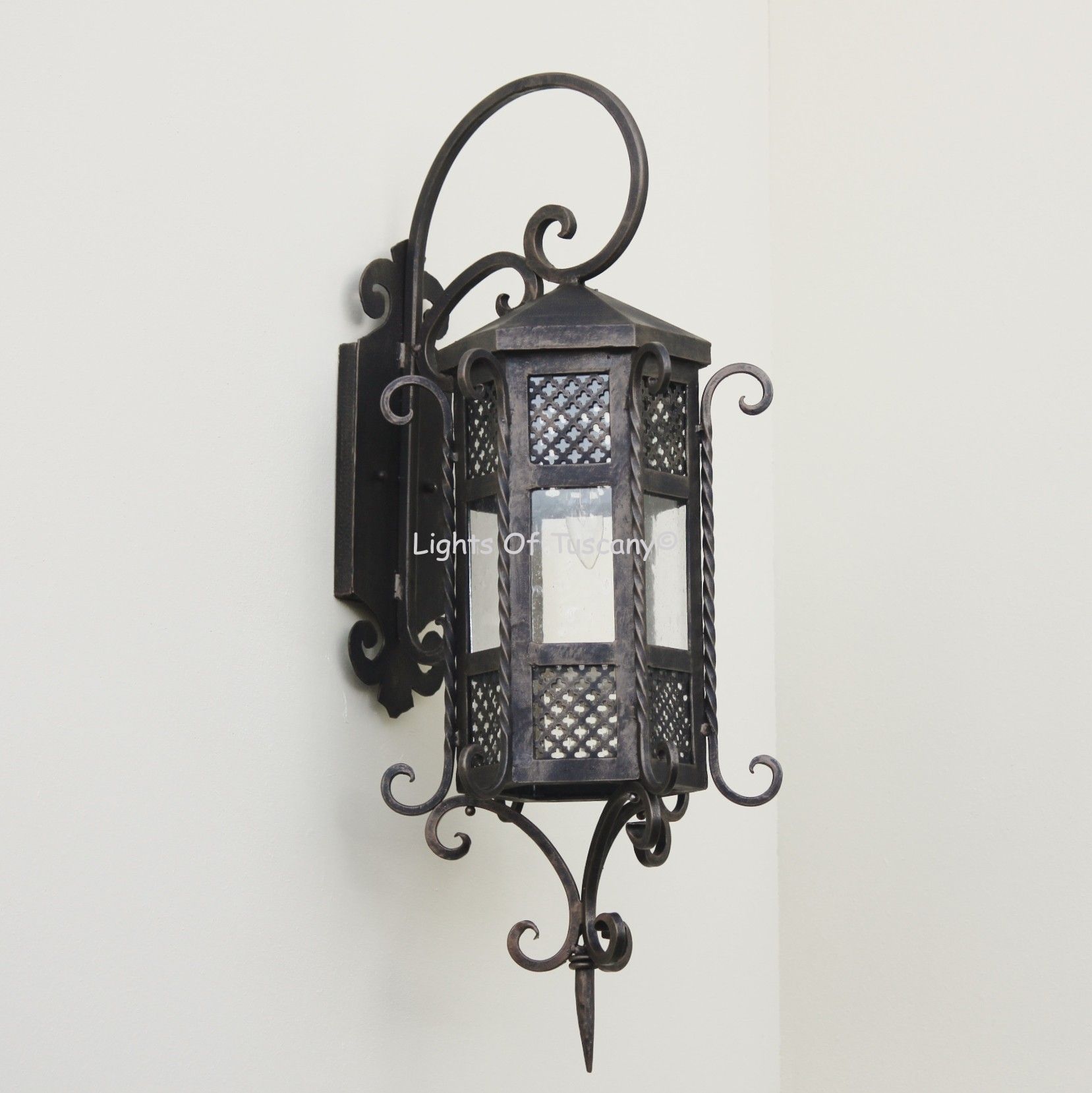 This beautiful hand crafted outdoor wall light is made of all authentic hand forged wrought iron. All our fixtures are hand painted and available in any of our finish options. This fixture is perfect for garage lighting, outdoor walls, backyard and patio lighting.