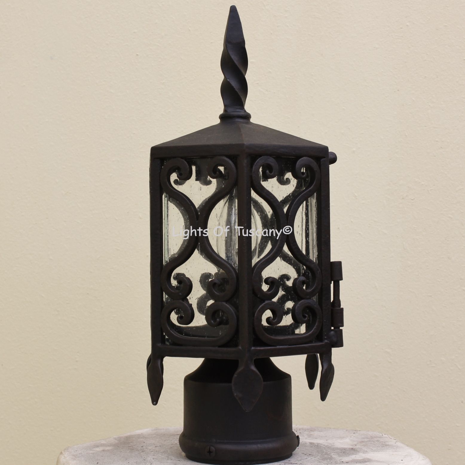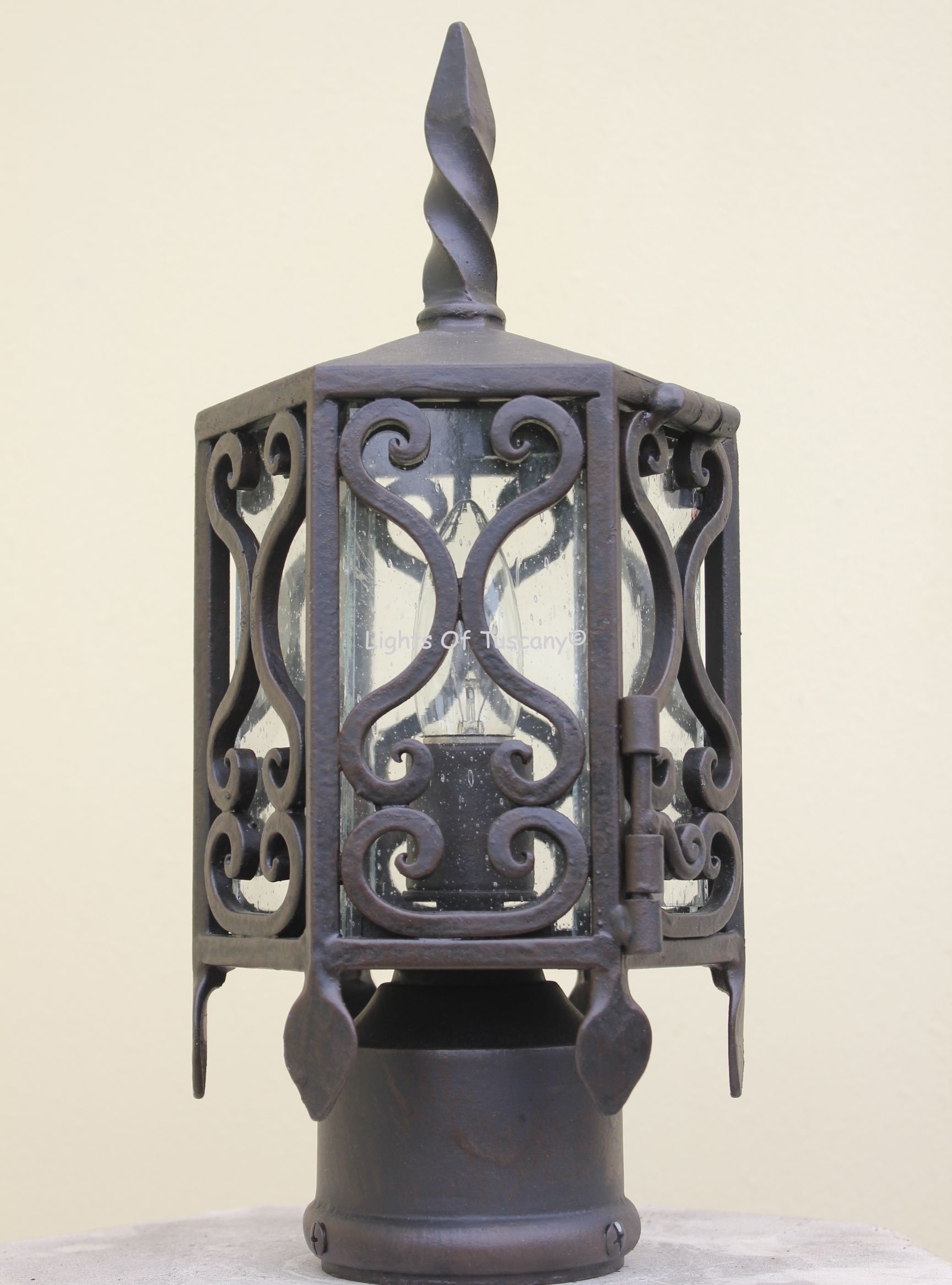 Spanish Style Post Light/ Lantern. Height : 14", Width: 6"