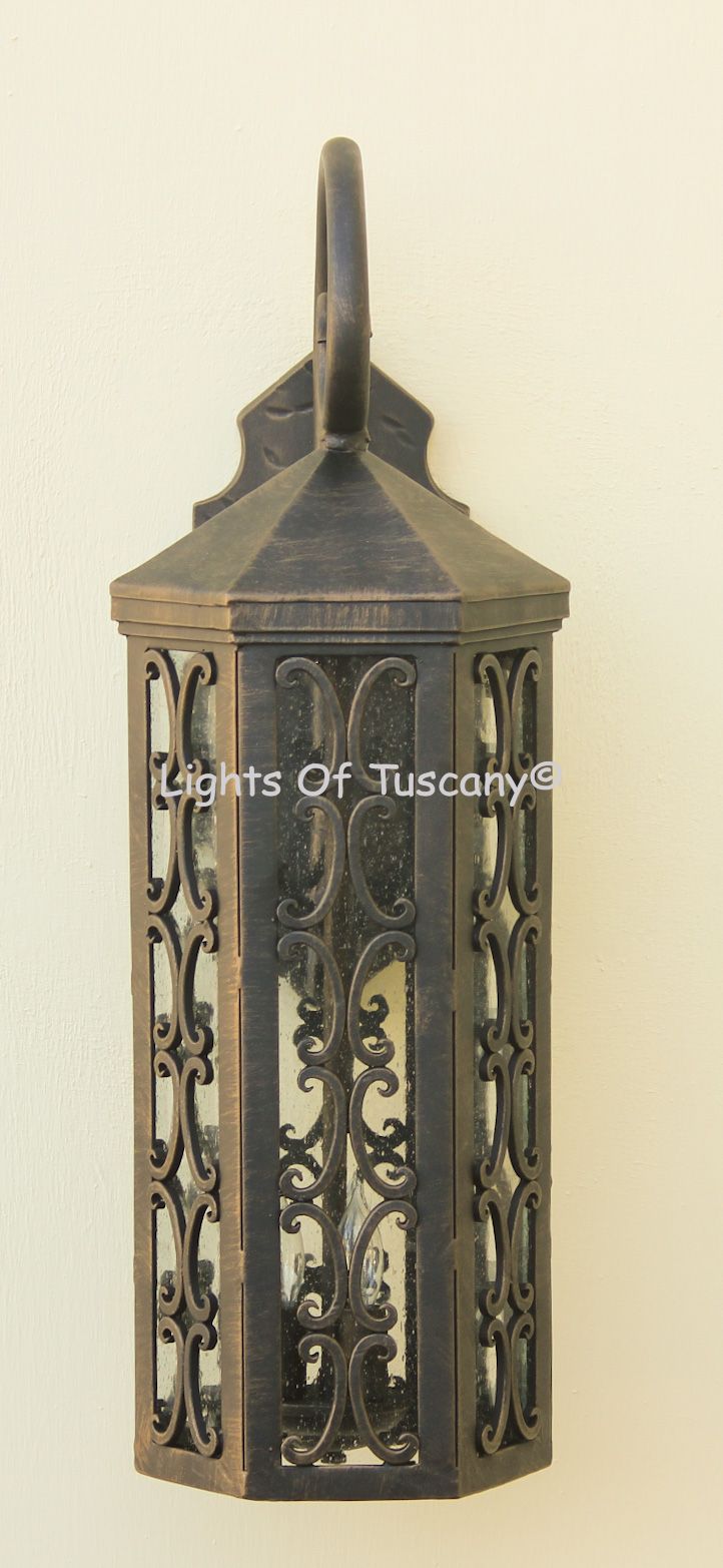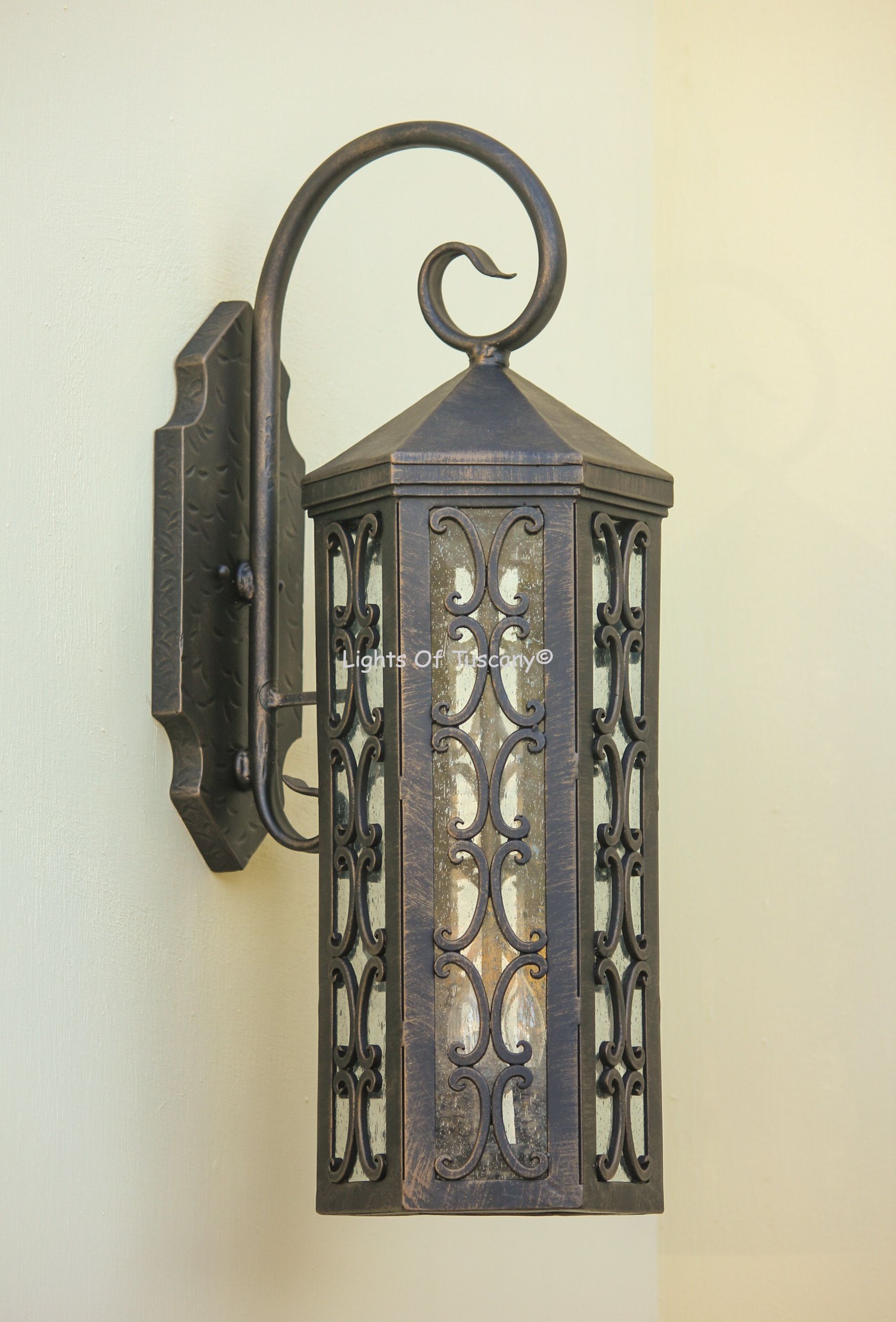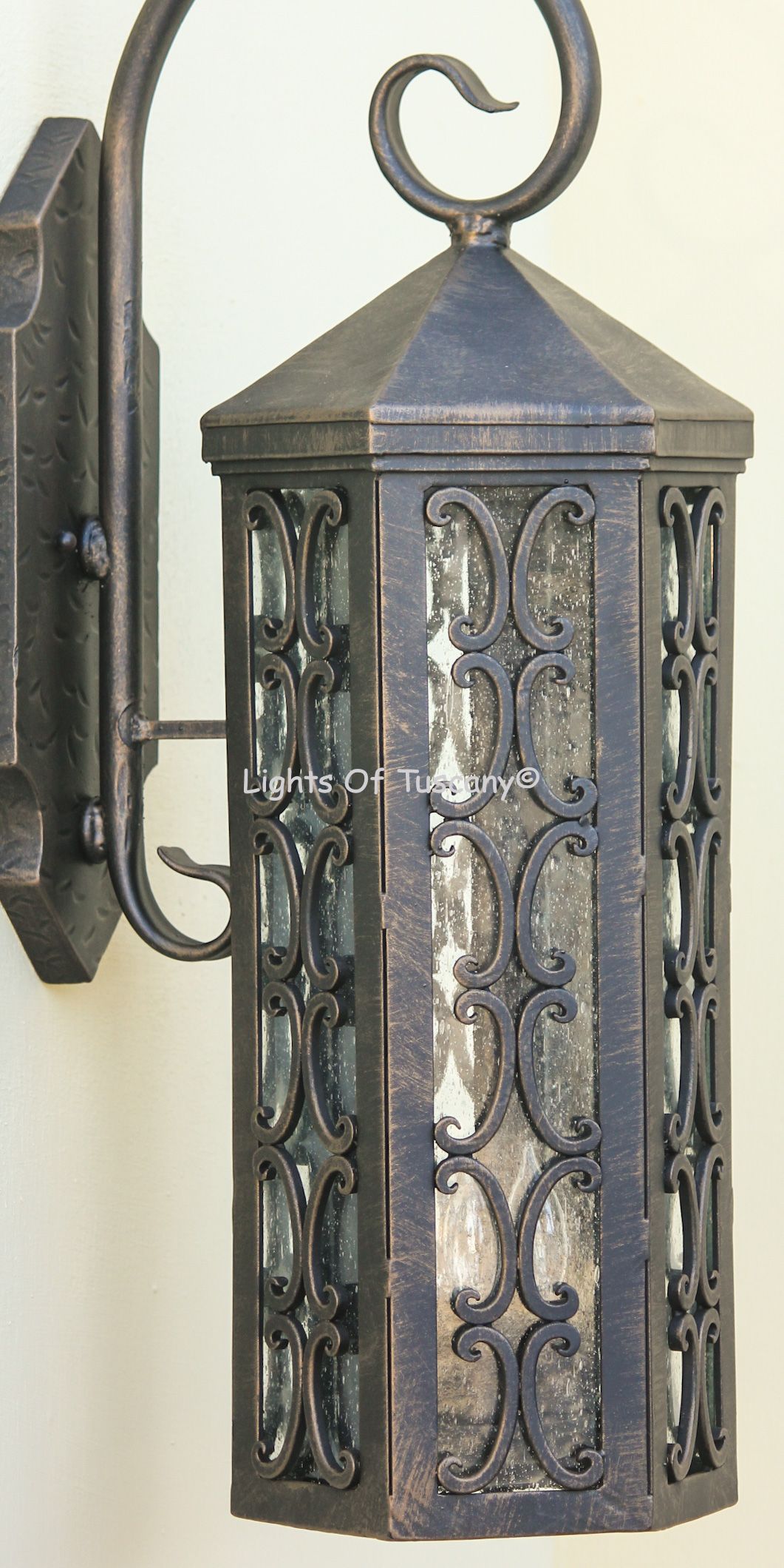 This beautiful hand crafted outdoor wall light is made of all authentic hand forged wrought iron. All our fixtures are hand painted and available in any of our finish options. This fixture is perfect for garage lighting, outdoor walls, backyard and patio lighting.