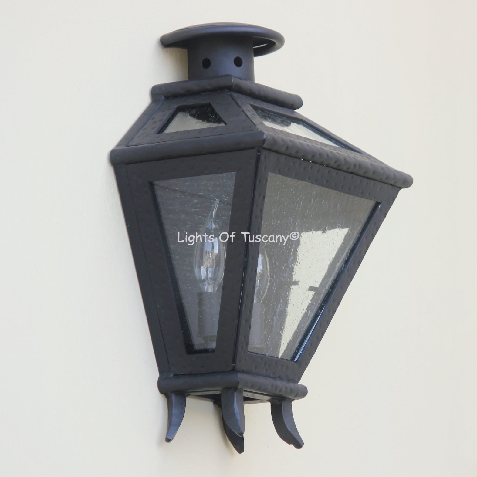This beautiful hand crafted outdoor wall light is made of all authentic hand forged wrought iron. All our fixtures are hand painted and available in any of our finish options. This fixture is perfect for garage lighting, outdoor walls, backyard and patio lighting.