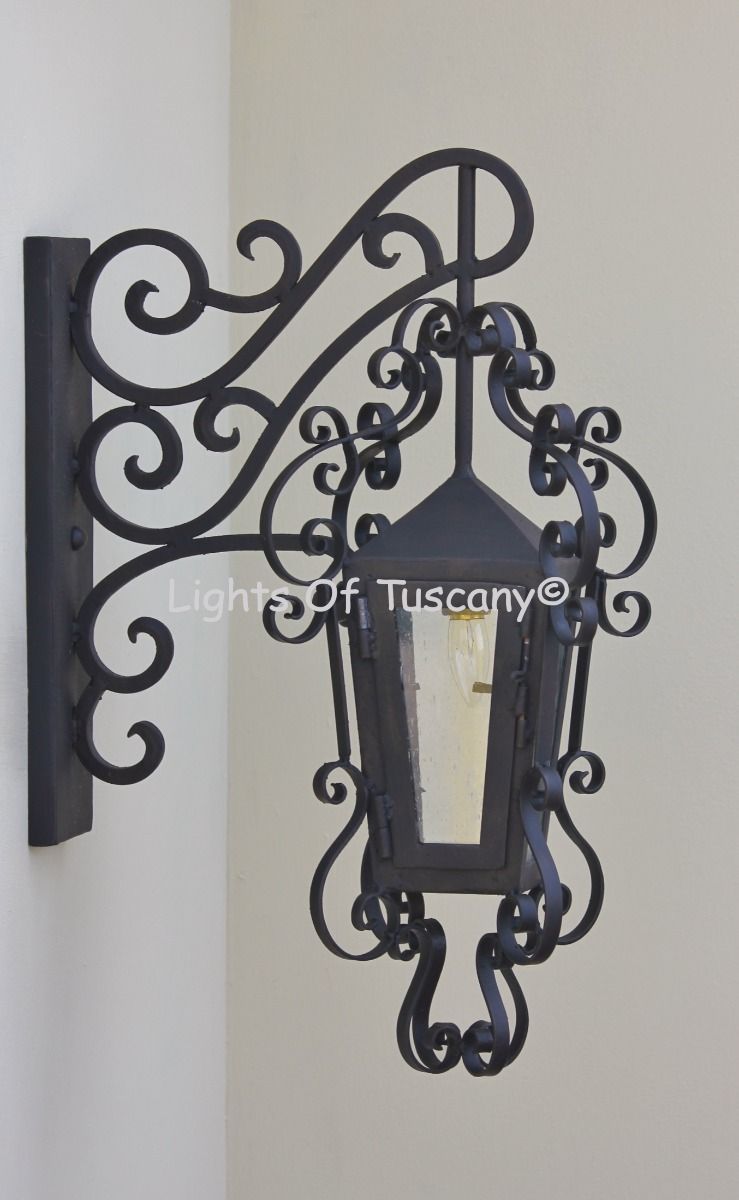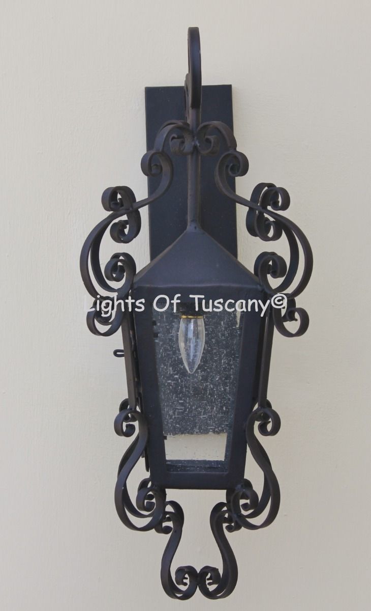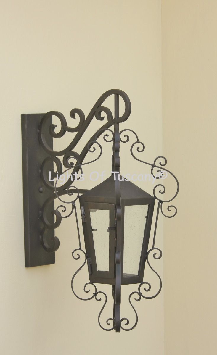 This beautiful hand crafted outdoor wall light is made of all authentic hand forged wrought iron. All our fixtures are hand painted and available in any of our finish options. This fixture is perfect for garage lighting, outdoor walls, backyard and patio lighting.