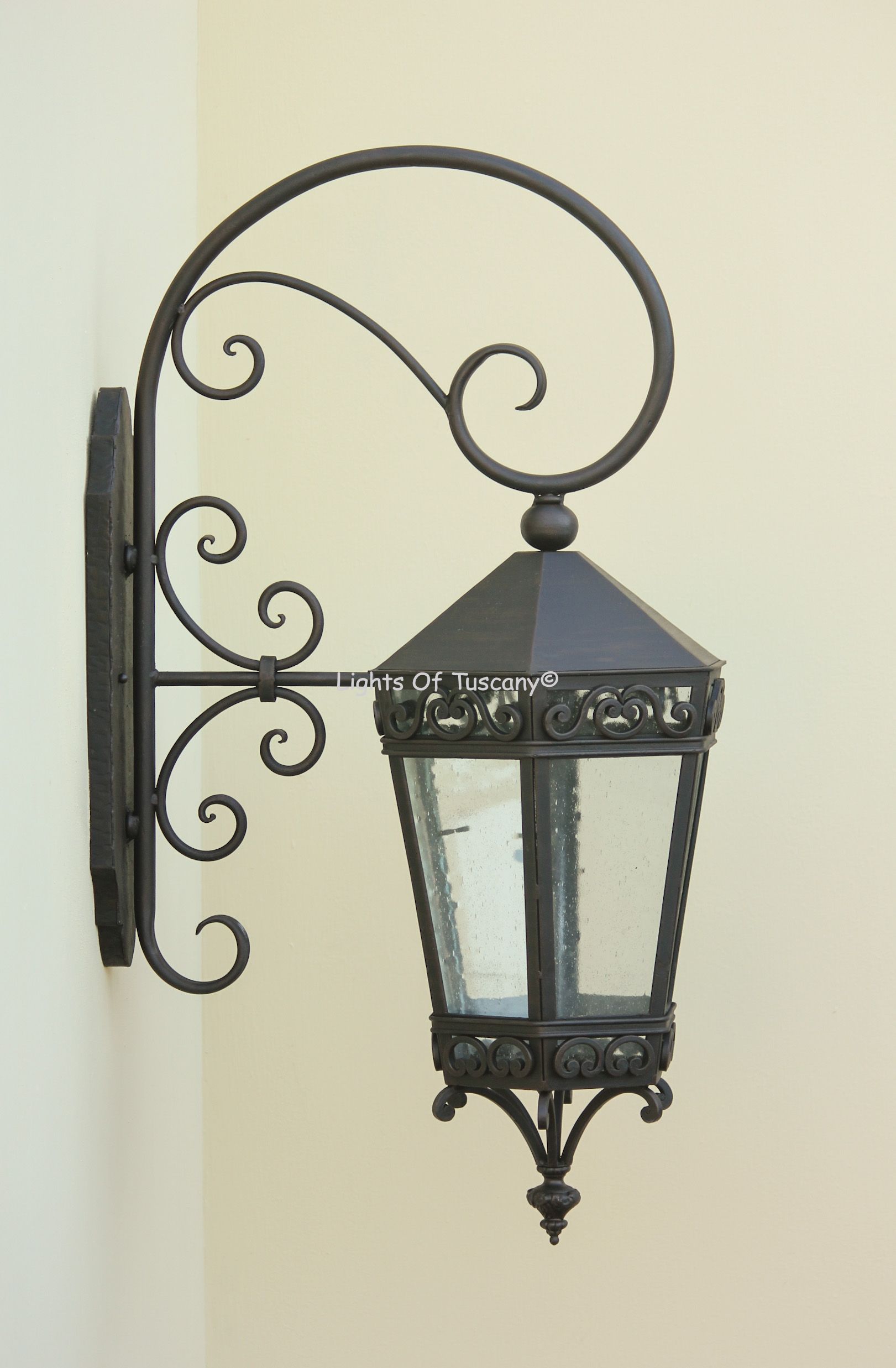 This beautiful hand crafted outdoor wall light is made of all authentic hand forged wrought iron. All our fixtures are hand painted and available in any of our finish options. This fixture is perfect for garage lighting, outdoor walls, backyard and patio lighting.