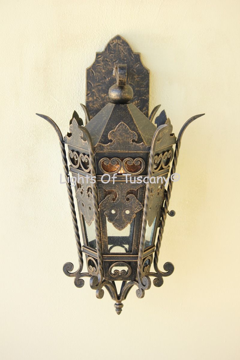 This beautiful hand crafted outdoor wall light is made of all authentic hand forged wrought iron. All our fixtures are hand painted and available in any of our finish options. This fixture is perfect for garage lighting, outdoor walls, backyard and patio lighting.