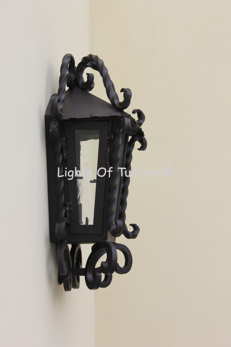 This beautiful hand crafted outdoor wall light is made of all authentic hand forged wrought iron. All our fixtures are hand painted and available in any of our finish options. This fixture is perfect for garage lighting, outdoor walls, backyard and patio lighting.