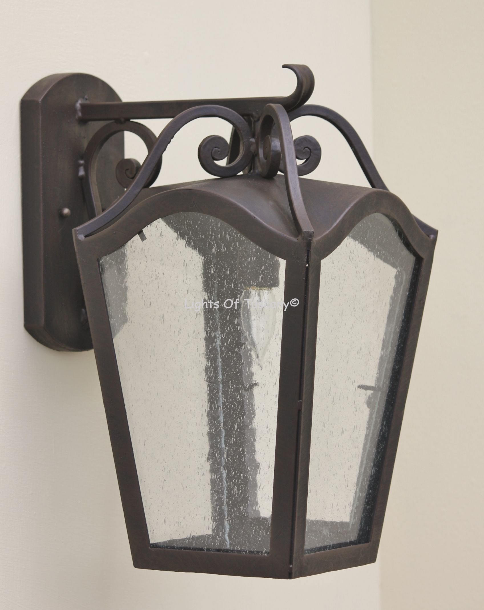 This beautiful hand crafted outdoor wall light is made of all authentic hand forged wrought iron. All our fixtures are hand painted and available in any of our finish options. This fixture is perfect for garage lighting, outdoor walls, backyard and patio lighting.