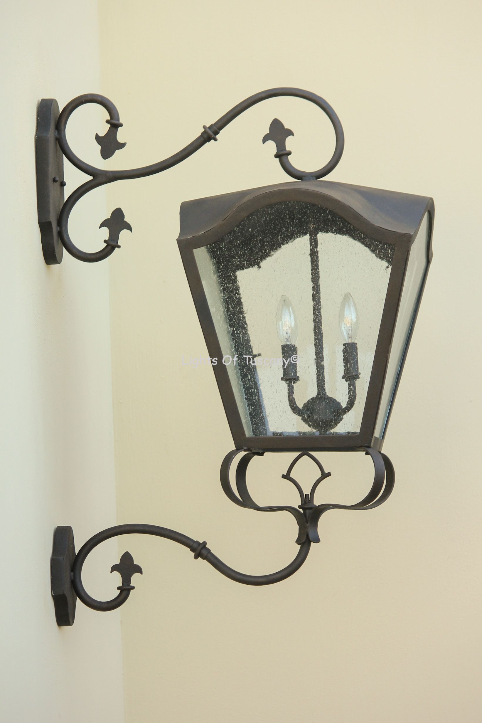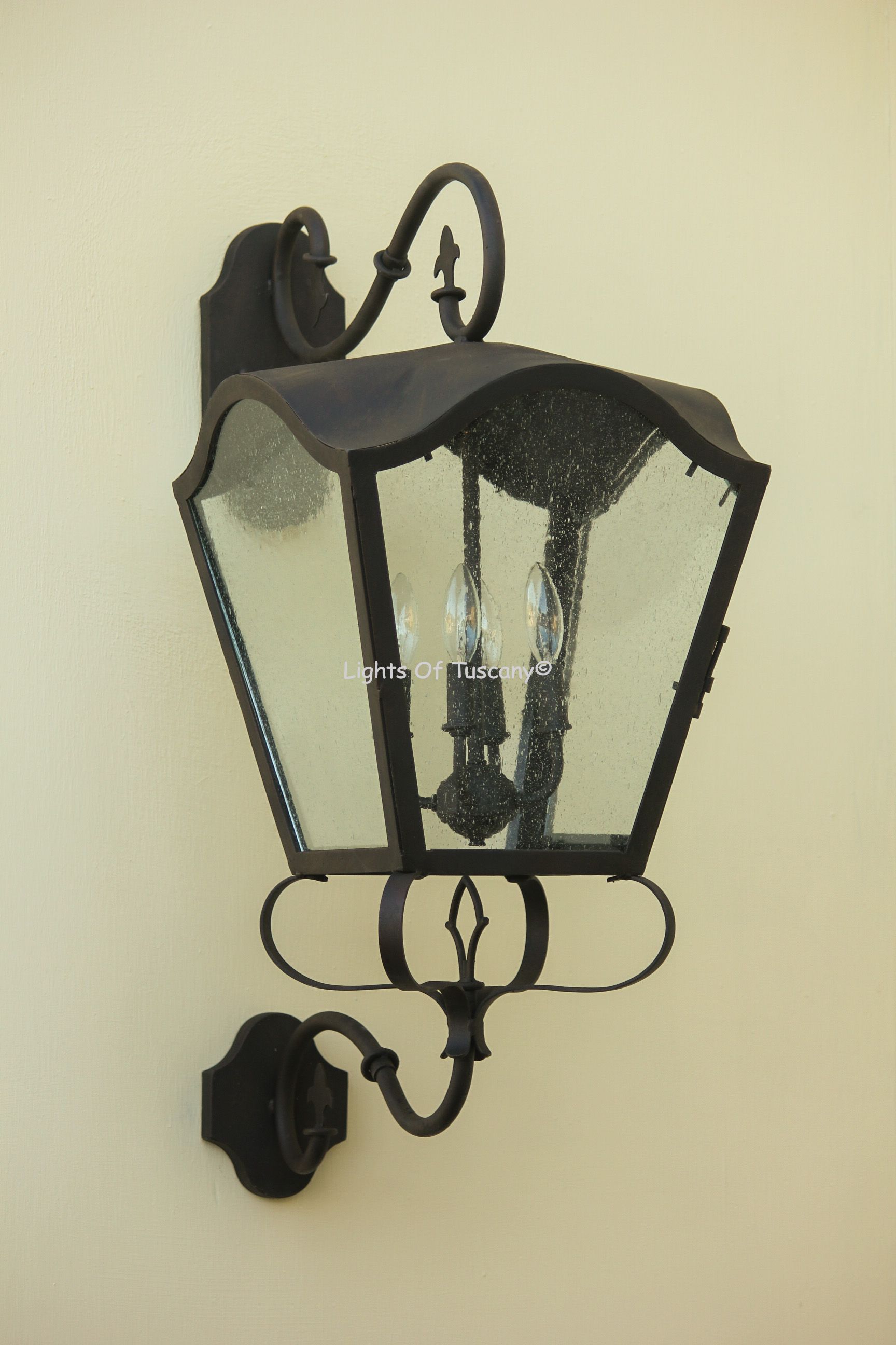 This beautiful hand crafted outdoor wall light is made of all authentic hand forged wrought iron. All our fixtures are hand painted and available in any of our finish options. This fixture is perfect for garage lighting, outdoor walls, backyard and patio lighting.
