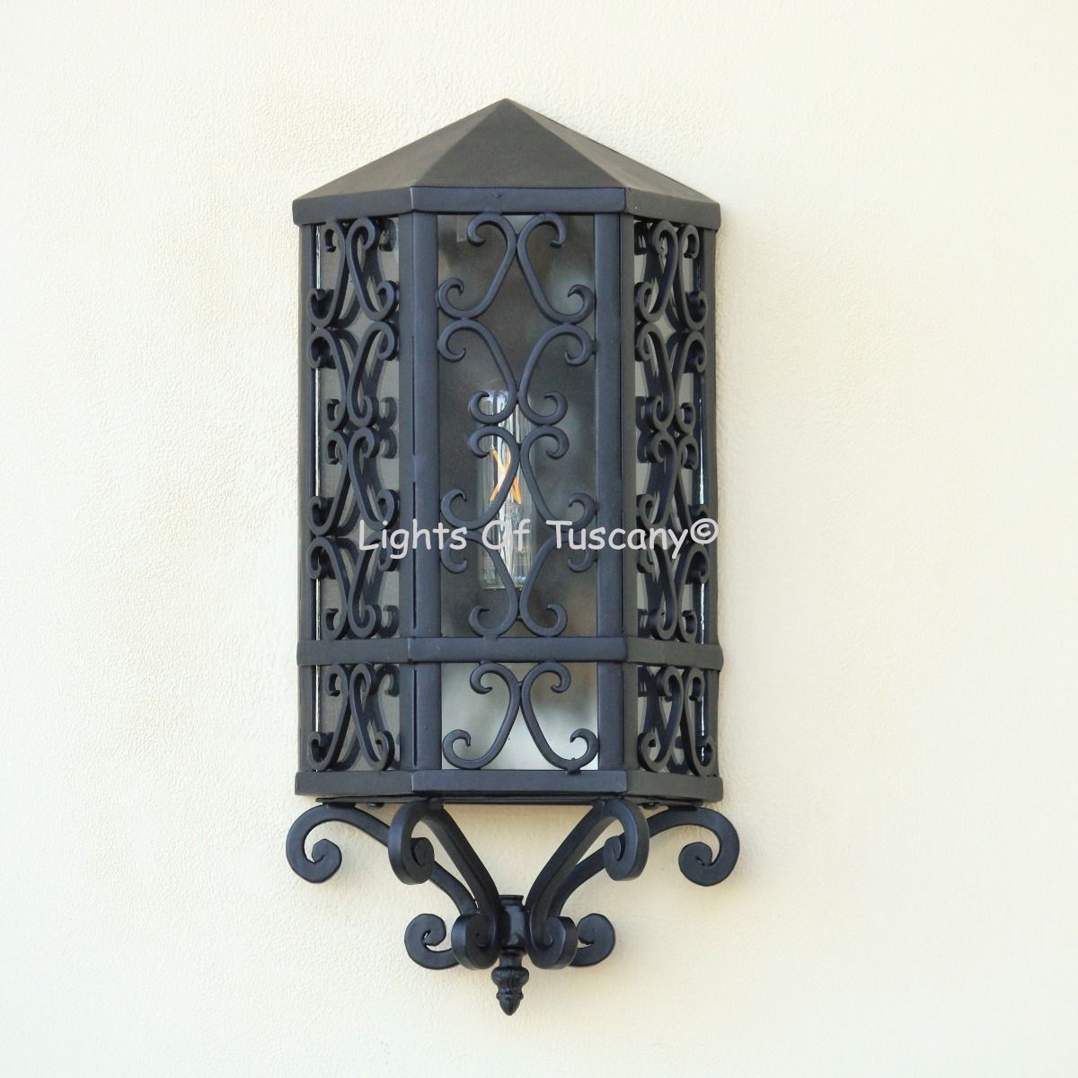 This beautiful hand crafted outdoor wall light is made of all authentic hand forged wrought iron. All our fixtures are hand painted and available in any of our finish options. This fixture is perfect for garage lighting, outdoor walls, backyard and patio lighting.