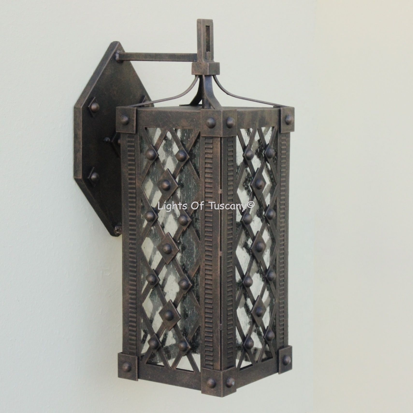 This beautiful hand crafted outdoor wall light is made of all authentic hand forged wrought iron. All our fixtures are hand painted and available in any of our finish options. This fixture is perfect for garage lighting, outdoor walls, backyard and patio lighting.