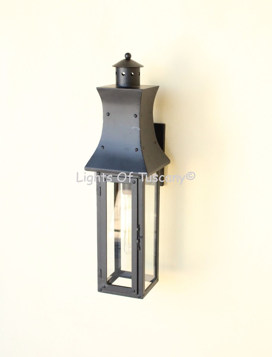 Illuminate your outdoor spaces with this stunning handcrafted outdoor wall light, meticulously crafted from authentic hand-forged heavy duty, commercial grade, wrought iron. Each piece is a testament to skilled craftsmanship, offering a timeless design that adds charm and character to your home’s exterior.