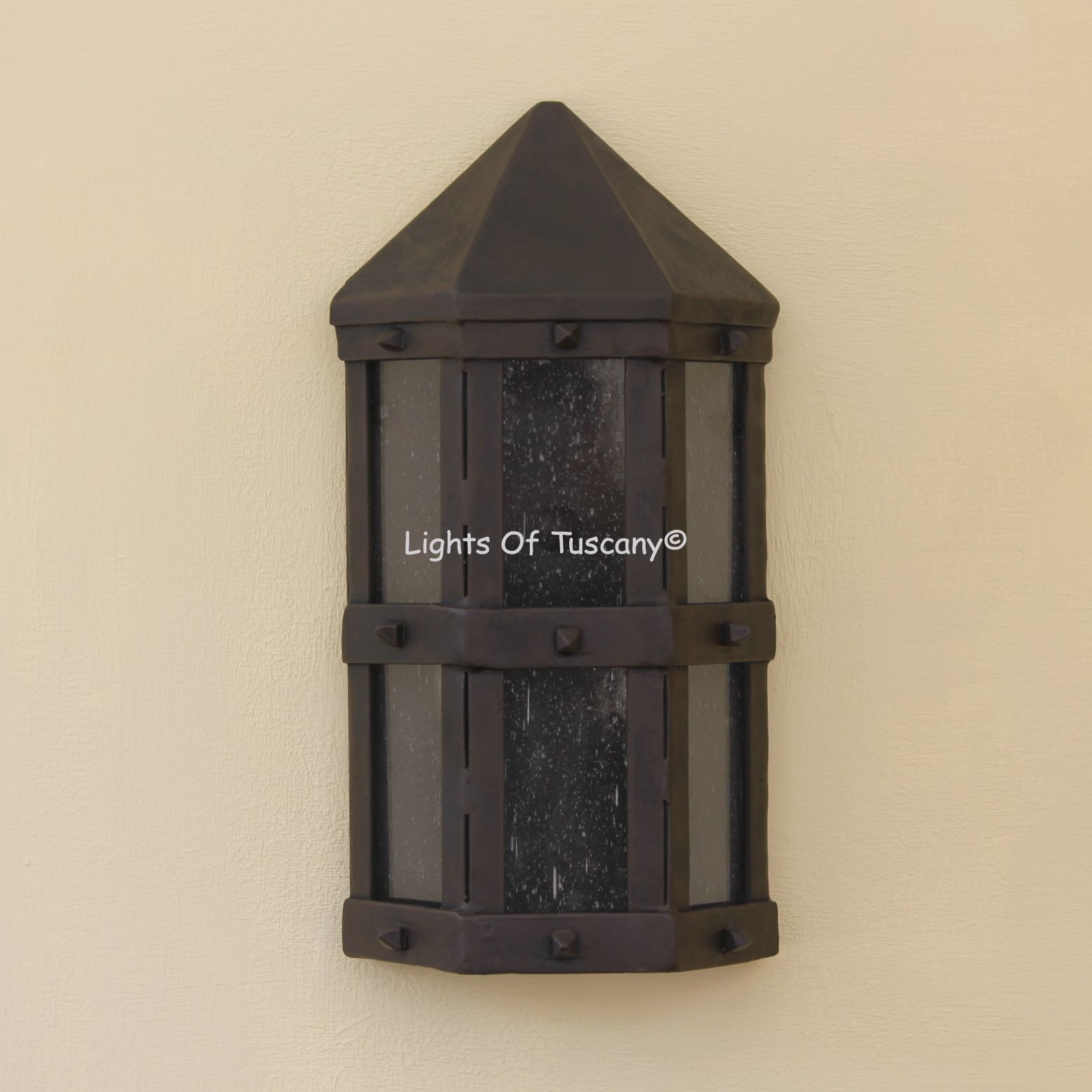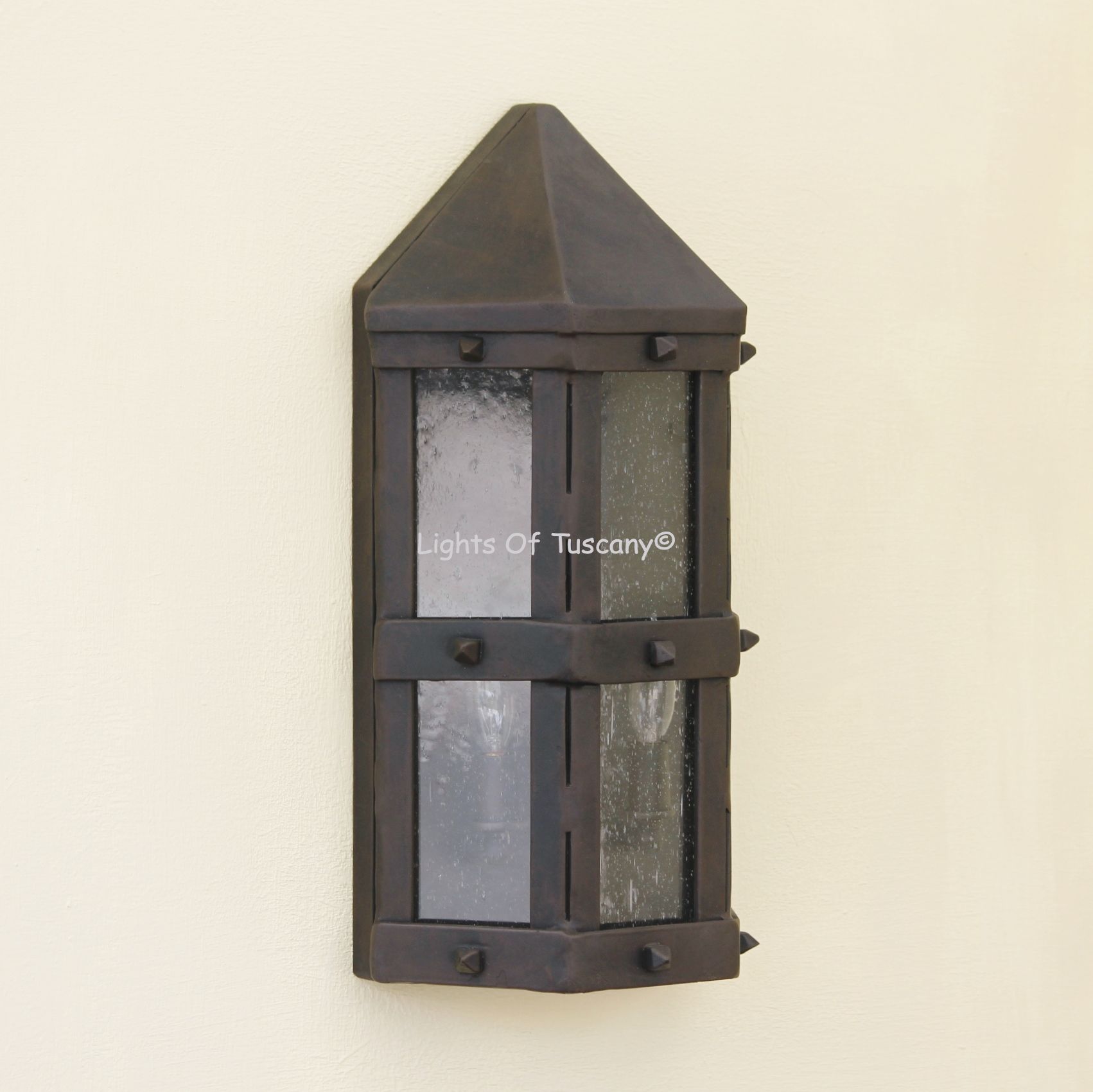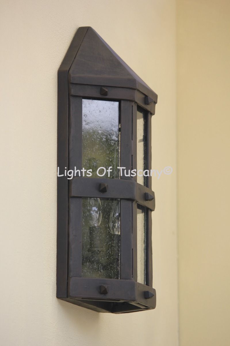 This beautiful hand crafted outdoor wall light is made of all authentic hand forged wrought iron. All our fixtures are hand painted and available in any of our finish options. This fixture is perfect for garage lighting, outdoor walls, backyard and patio lighting.
