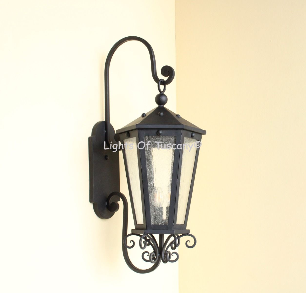 Illuminate your outdoor spaces with this stunning handcrafted outdoor wall light, meticulously crafted from authentic hand-forged heavy duty, commercial grade, wrought iron. Each piece is a testament to skilled craftsmanship, offering a timeless design that adds charm and character to your home’s exterior.