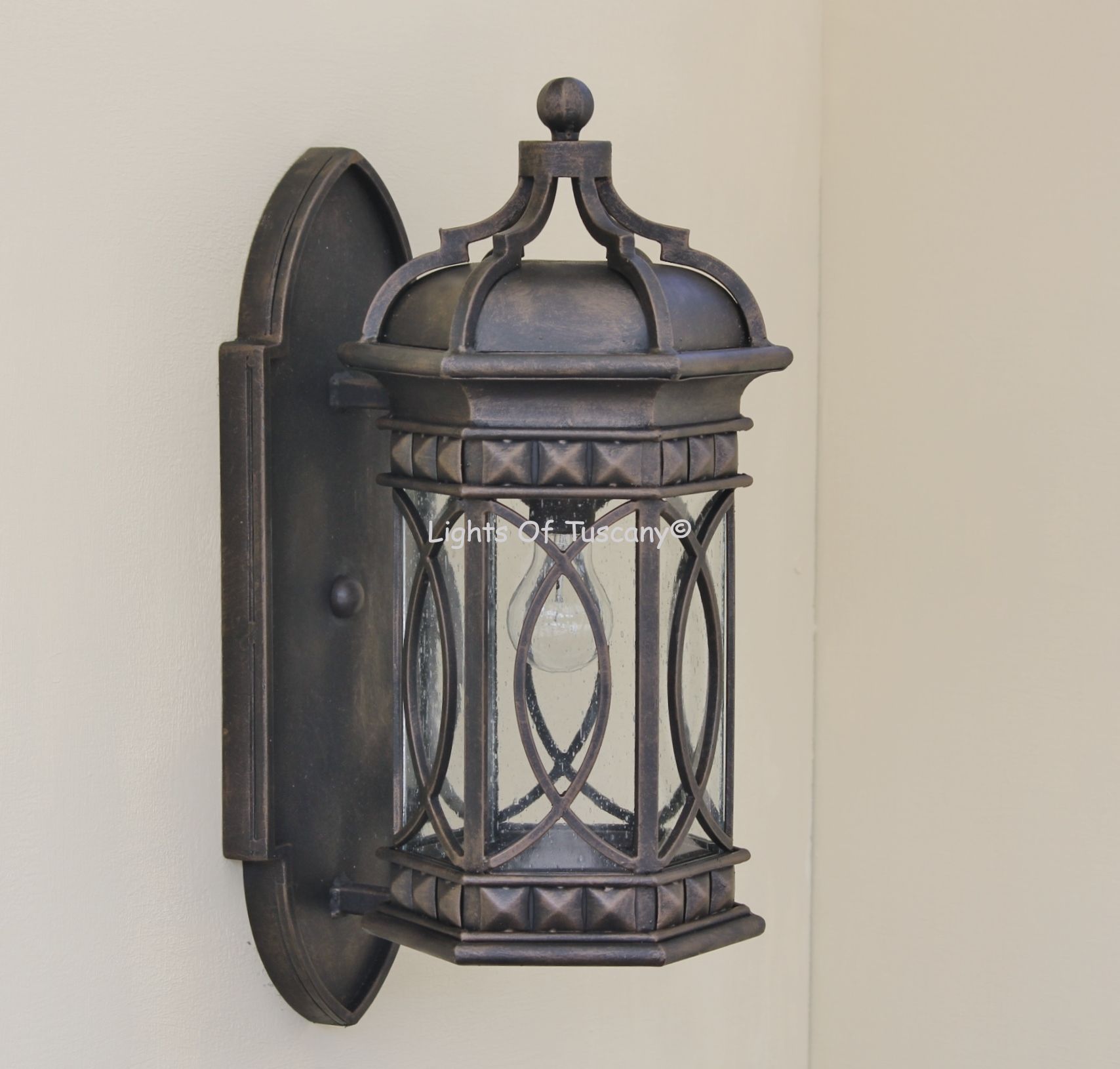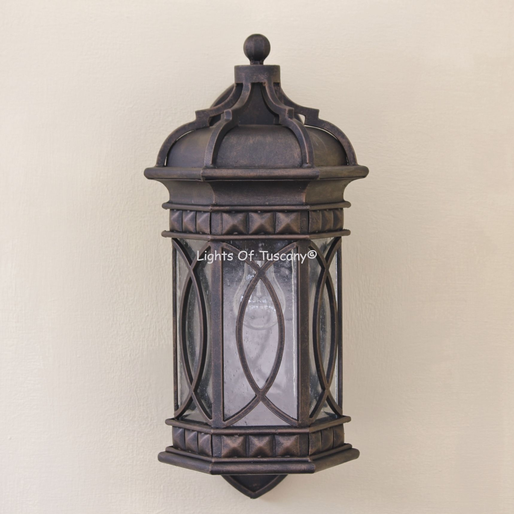 This beautiful hand crafted outdoor wall light is made of all authentic hand forged wrought iron. All our fixtures are hand painted and available in any of our finish options. This fixture is perfect for garage lighting, outdoor walls, backyard and patio lighting.
