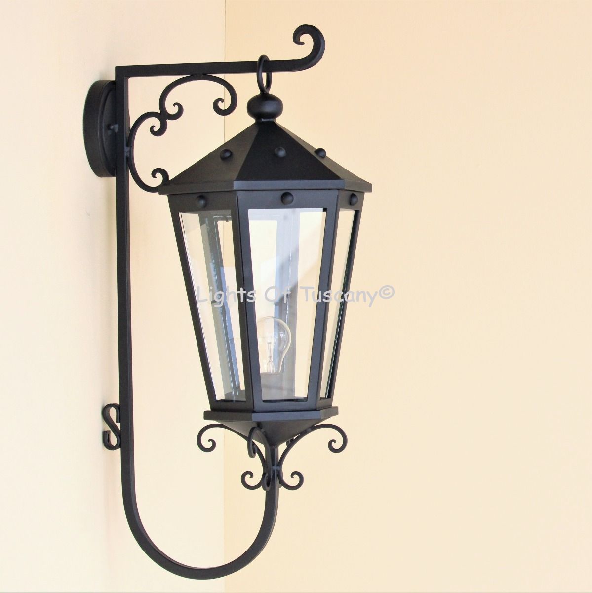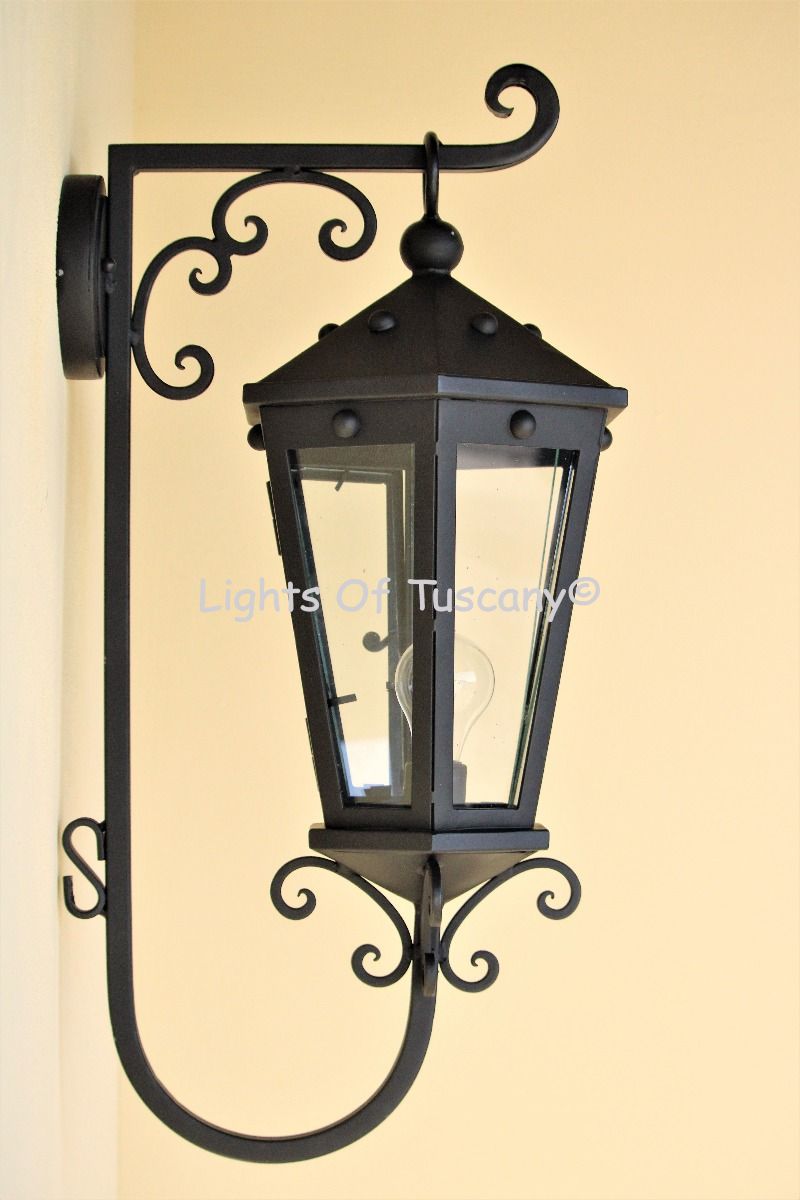 This beautiful hand crafted outdoor wall light is made of all authentic hand forged wrought iron. All our fixtures are hand painted and available in any of our finish options. This fixture is perfect for garage lighting, outdoor walls, backyard and patio lighting.