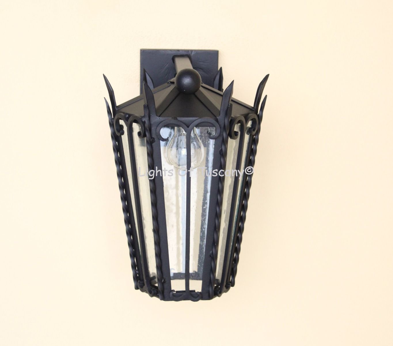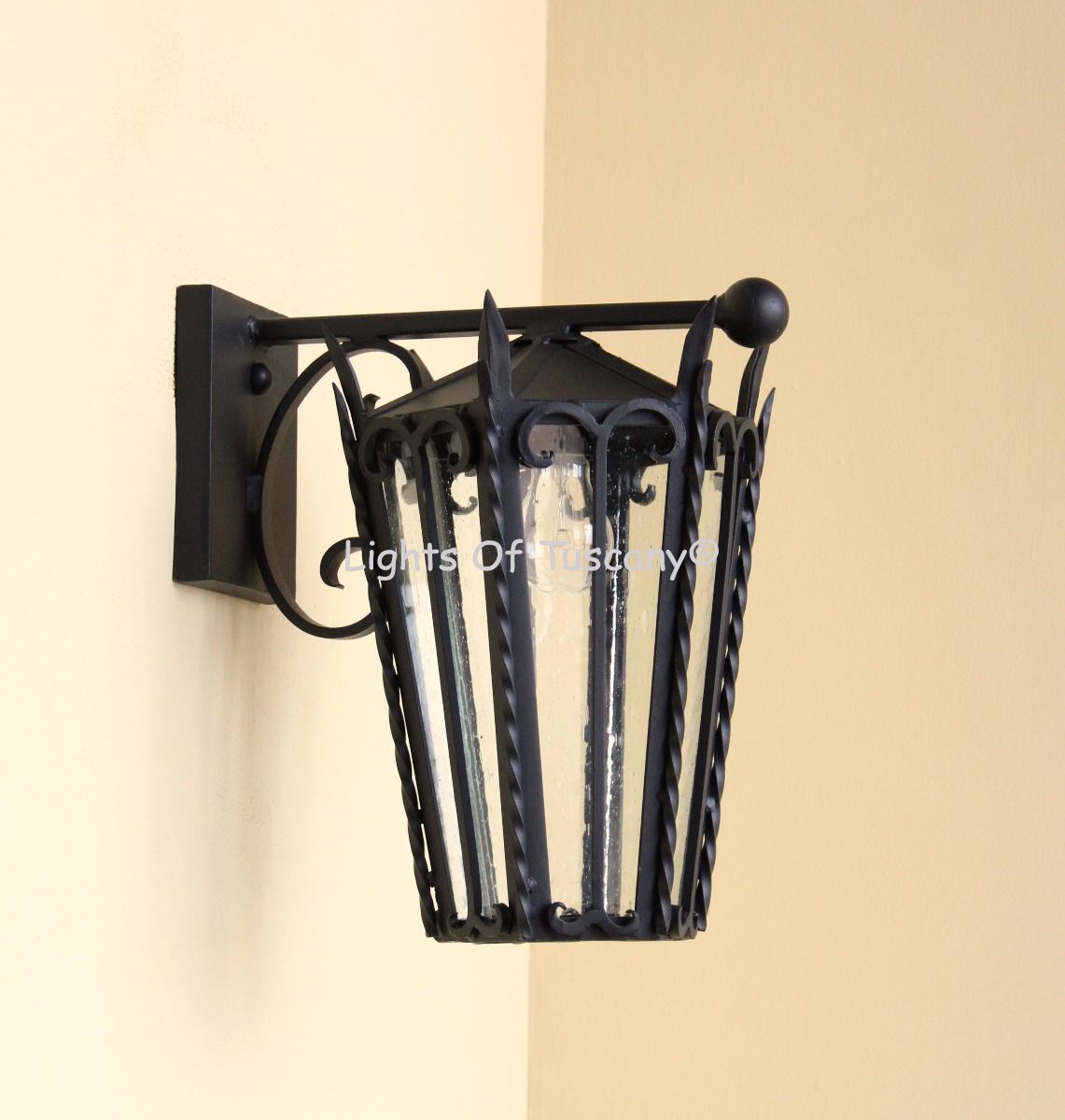 Illuminate your outdoor spaces with this stunning handcrafted outdoor wall light, meticulously crafted from authentic hand-forged heavy duty, commercial grade, wrought iron. Each piece is a testament to skilled craftsmanship, offering a timeless design that adds charm and character to your home’s exterior.